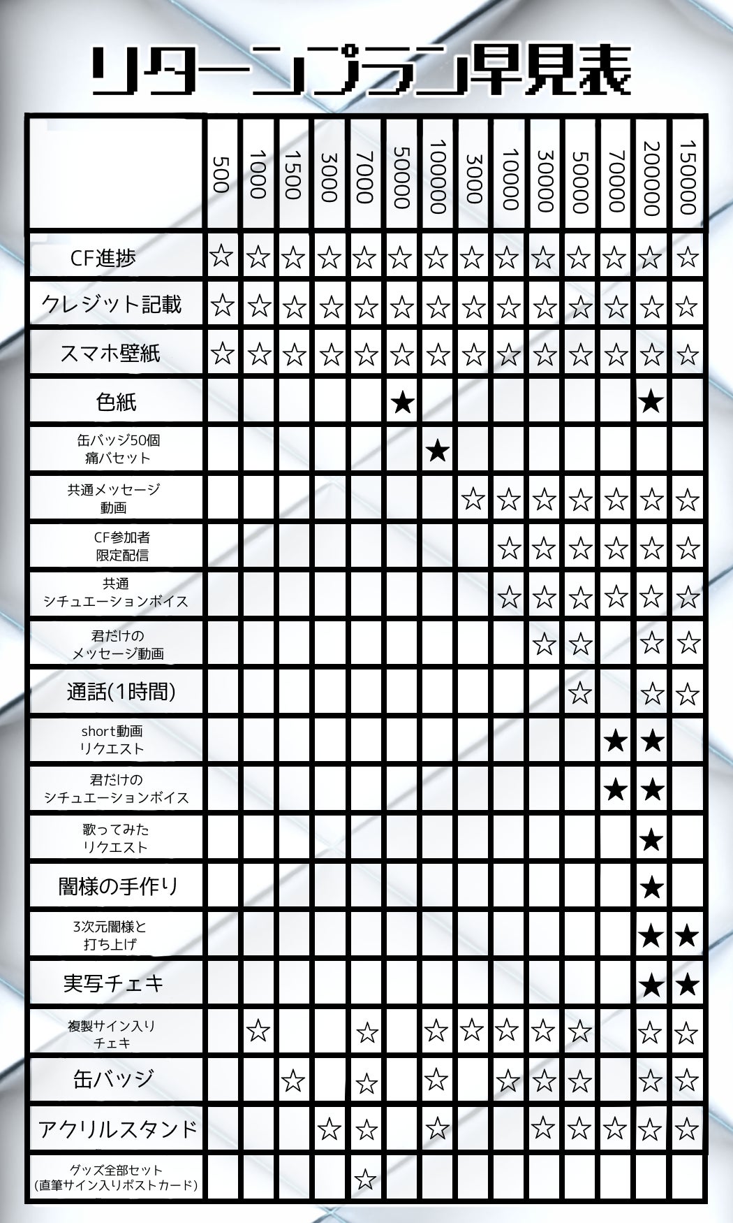 ♱【3次元闇様】こちらのプランは3次元の僕と今回実施するCFの打ち上げになります。場所は東京の予定です。実写のチェキもこちらの打ち上げの時に配布いたします。今回のCFグッズがお手元に届いている場合は持ち込んでいただいたらその場で直接サインを書くことも可能です。詳しい内容は日程などが決まり次第ご連絡いたします。