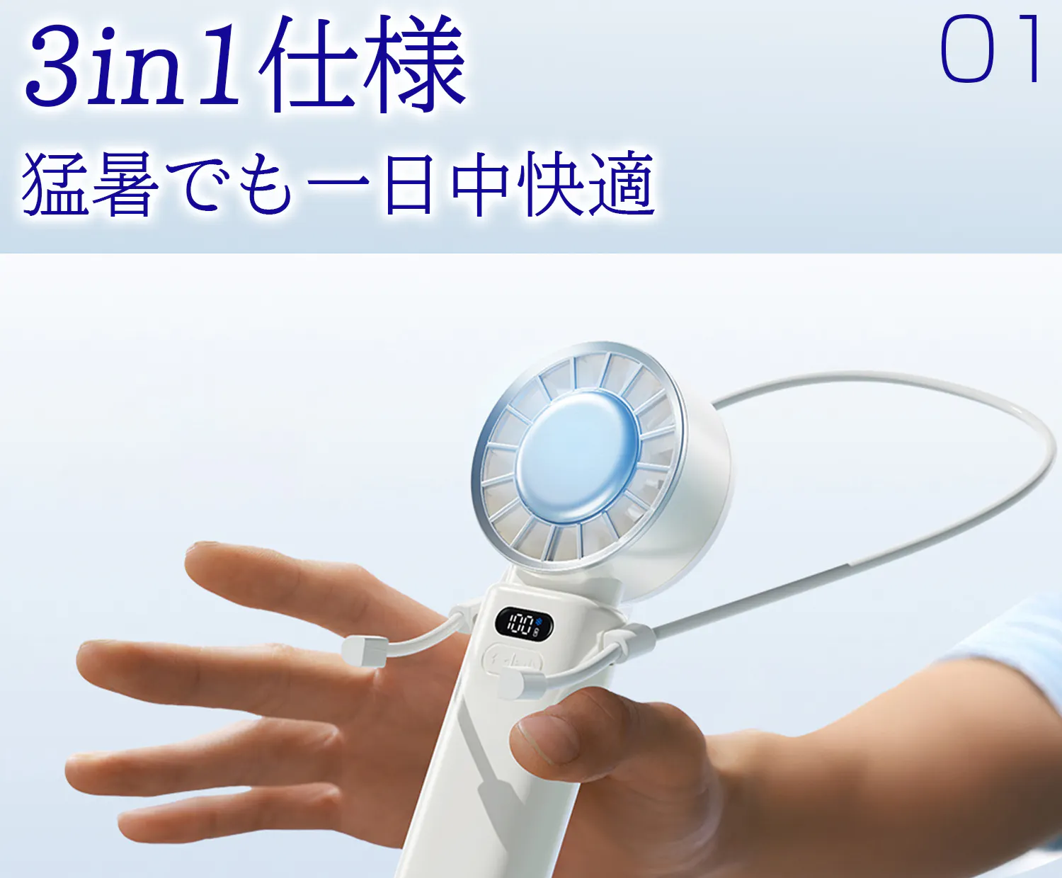 ハンディ、ストラップ、スタンド、使い方が自由、屋内から屋外まで涼しさはどこでも。