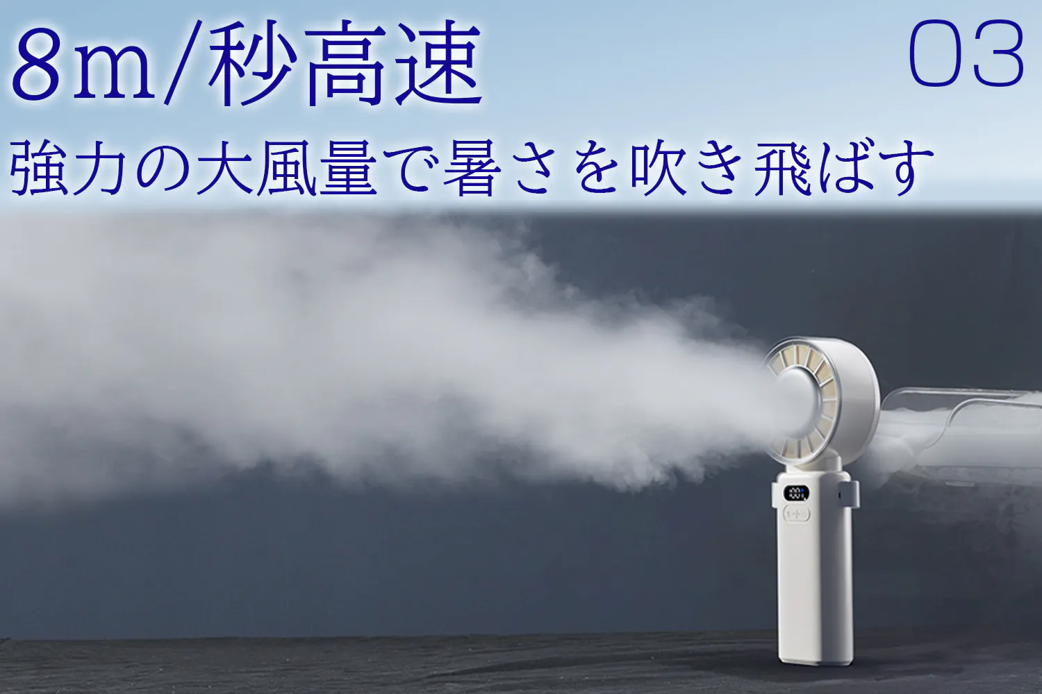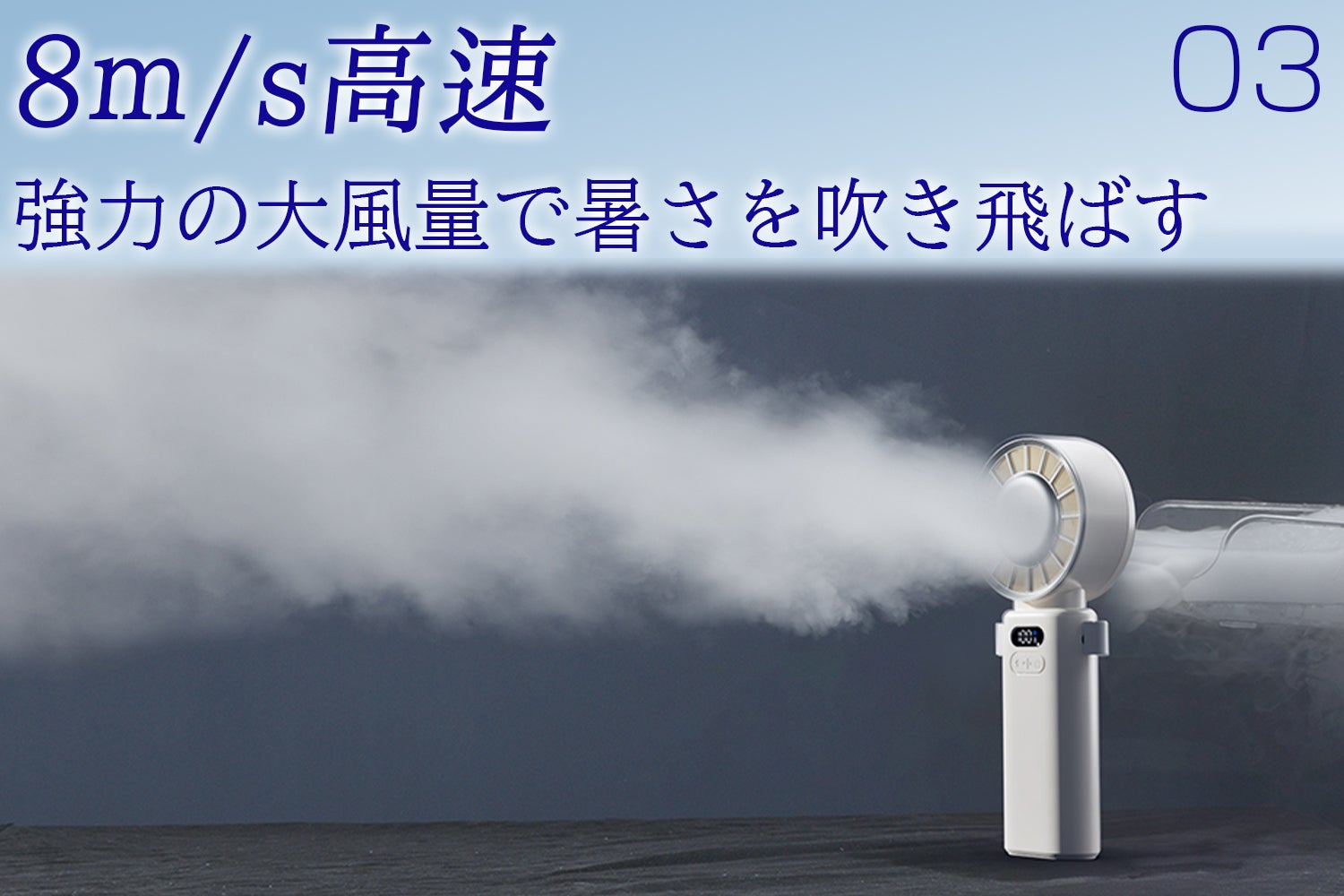 コンパクトな見た目からは想像できない「最大風速8m/s」を実現。パワフルな送風で暑さもべたつきも吹き飛ばす。車の掃除なども手伝ってくれます。