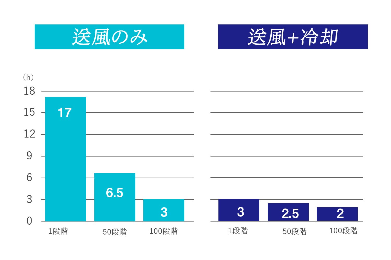MAX100段階の最大風速でも、3時間連続使用することができます。