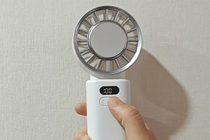 風量増加:送風機能をONにしてから、電源ボタンを長押しすると1段階ずつ、100段階まで風量がUPします。