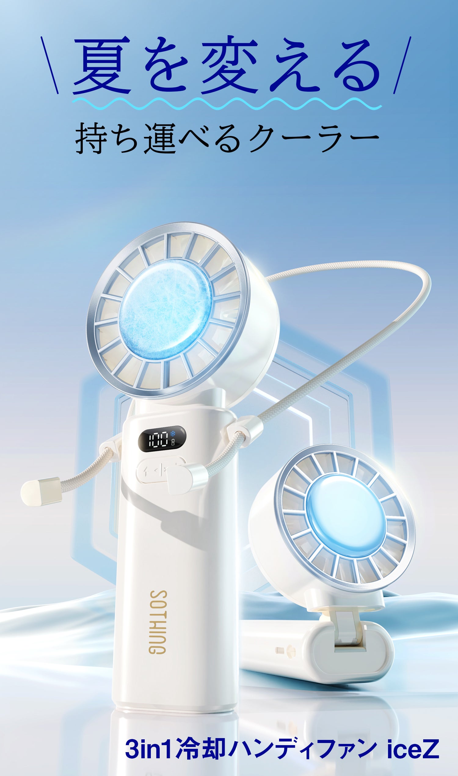 ペルチェプレート×強力ターボファンをW搭載、触れた瞬間に驚異の冷たさを実感、ハンディファンの常識を覆す爽快な大風量を実現!今年も迫ってくる猛暑を「3in1冷却ハンディファンiceZ」で乗り切りましょう!