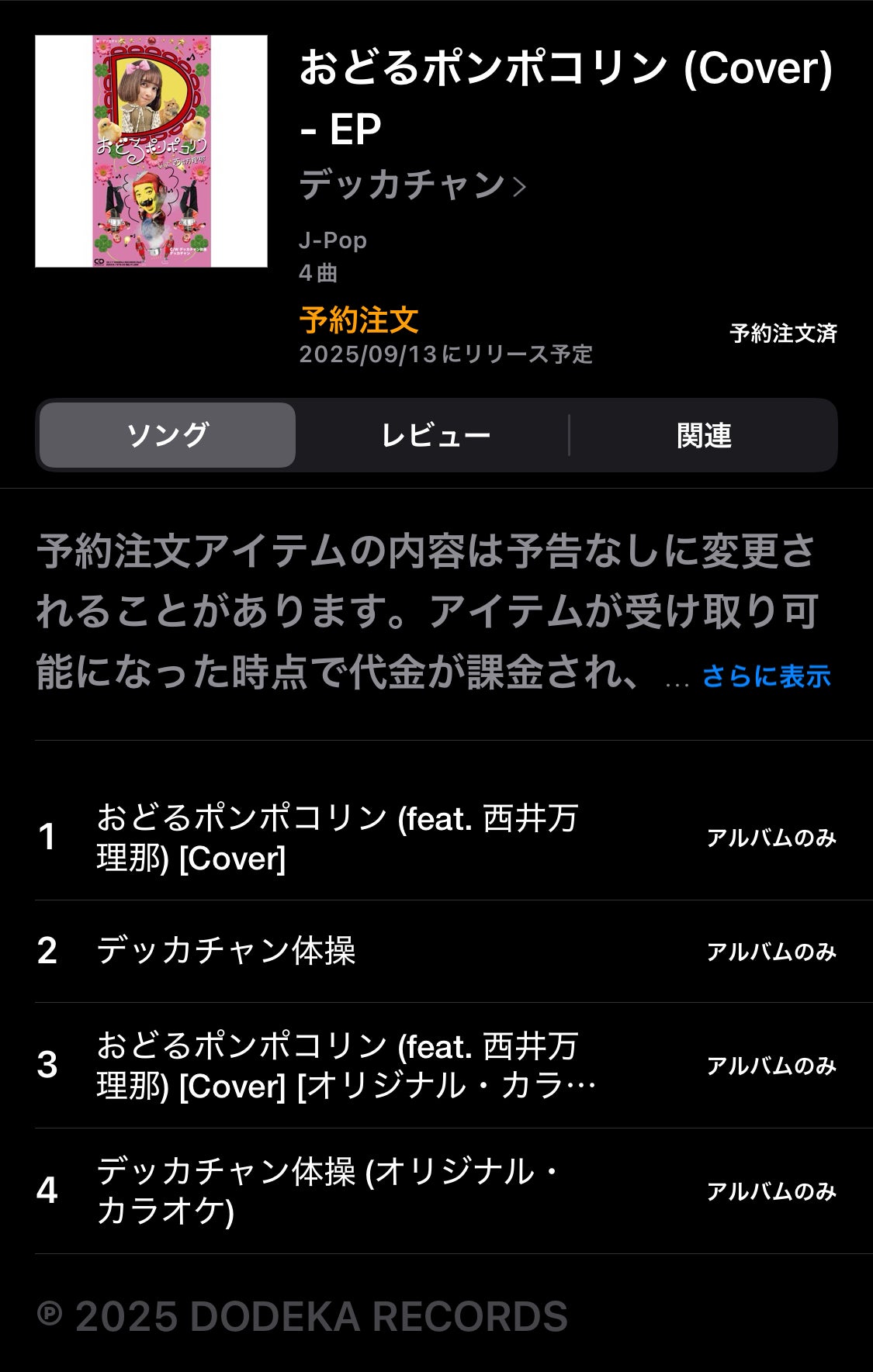 2025/09/06 23:299/13(土)デッカチャン「おどるポンポコリン feat. 西井万理那 」MV公開しまーす!リターンのエンドロールもお楽しみに。https://youtu.be/n2yLi2yH3FQ?si=z60NfyXdGRVekIeuそして!9/13(土)デジタル配信決定!予約受付中!デッカチャン「おどるポンポコリン feat. 西井万理那」https://music.apple.com/jp/album/odoru-ponpokorin-cover-ep/1837168616こちらもお楽しみにです。ほか、リターンお待たせしております。連絡とれない方もいらっしゃるので何回かまた連絡させてもらいますので。気にかけてねー! もっと見る