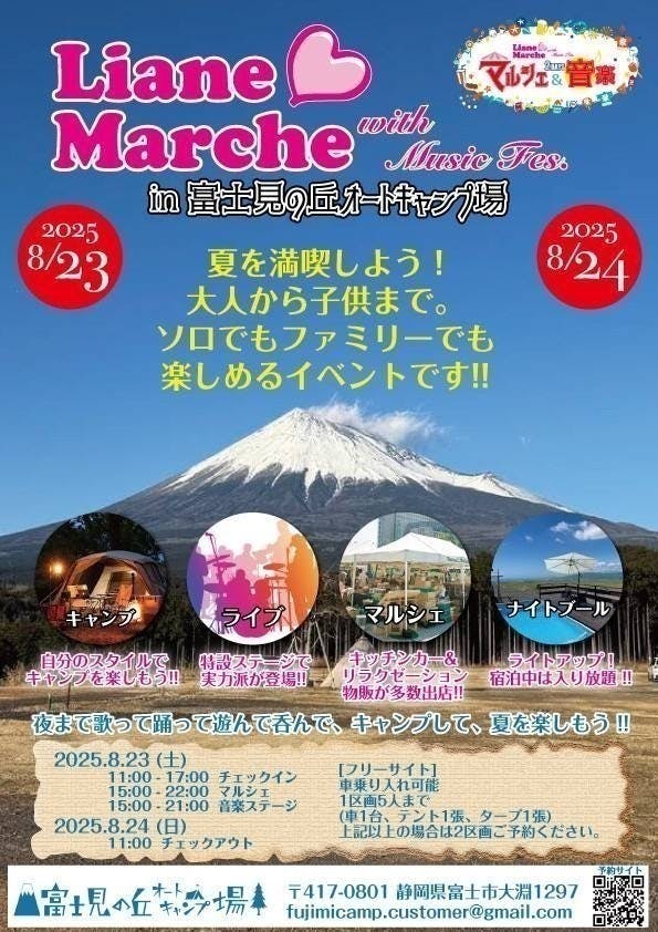 私たちのプロジェクトでは、キャンプ場を舞台に音楽フェスティバルとハンドメイドマルシェを融合させたイベントを開催することを目指しています。8月23日と24日にはナイトマルシェや縁日を開催し、参加者が自然と文化を一度に楽しめる特別な空間を提供したいと考えています。このイベントを通じて、自然の美しさと音楽の力を感じてもらうとともに、地域の手作り品の魅力を多くの方に知っていただくことを目指しています。