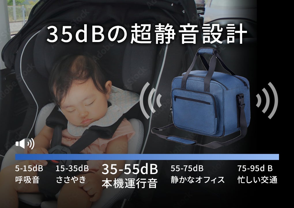 一般的なコンプレッサー式のような振動音や大きな駆動音は一切なし。ペルチェ素子を採用することで、動作音はファンの回転音だけ。その静かさは図書館レベルの約35dB。夜間や静かな空間でも、音を気にせず快適に使えます。