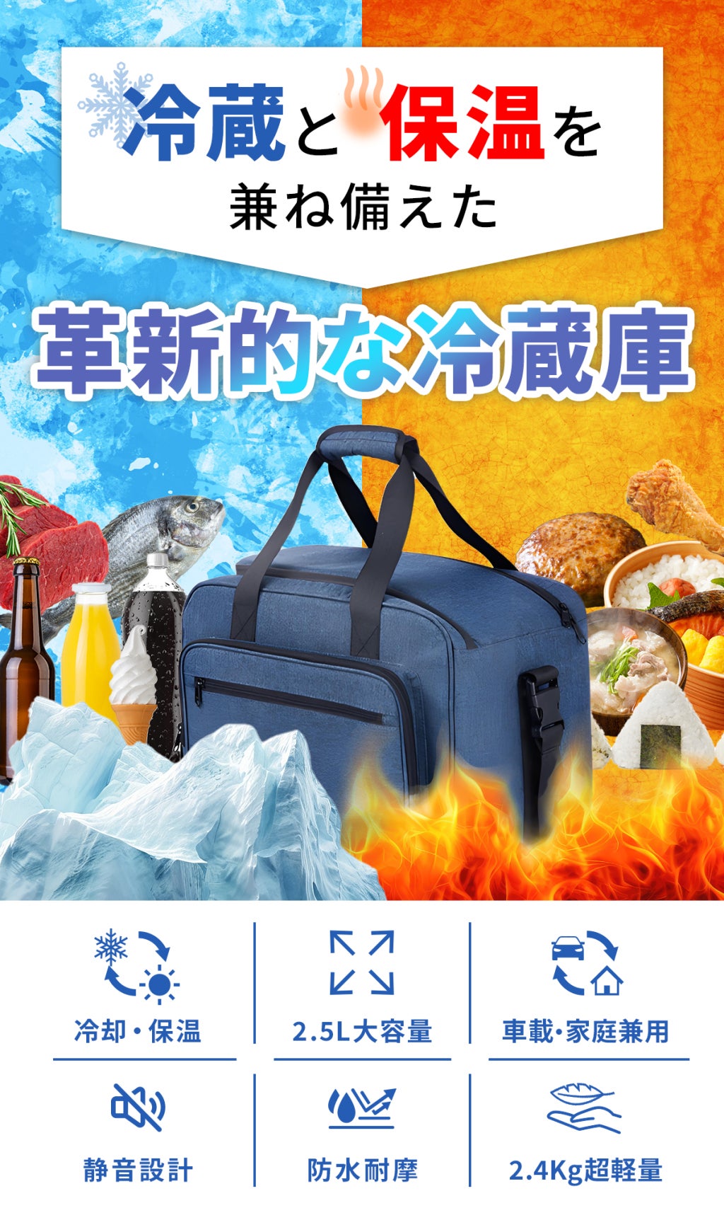 従来のコンプレッサー式に比べて圧倒的に軽量。さらに、内部スペースを最大限に活かす設計で、収納効率はなんと90%超え!キャンプ・ピクニック・スポーツ観戦まで、これ一つでアウトドアがもっと快適に。