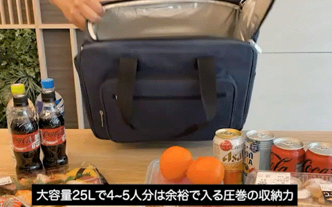 氷や飲料はもちろん、野菜や果物、食材まで4~5人分は余裕で入る圧巻の収納力。アウトドアやピクニックはもちろん、週末のまとめ買いや日常の買い物バッグとしても大活躍。