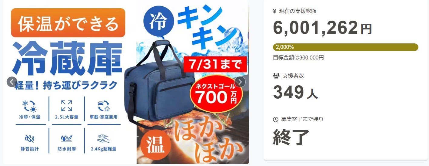 このたびは、「5〜55℃対応!一年中使える冷蔵・保温バッグ」プロジェクトにご支援いただき、誠にありがとうございました。