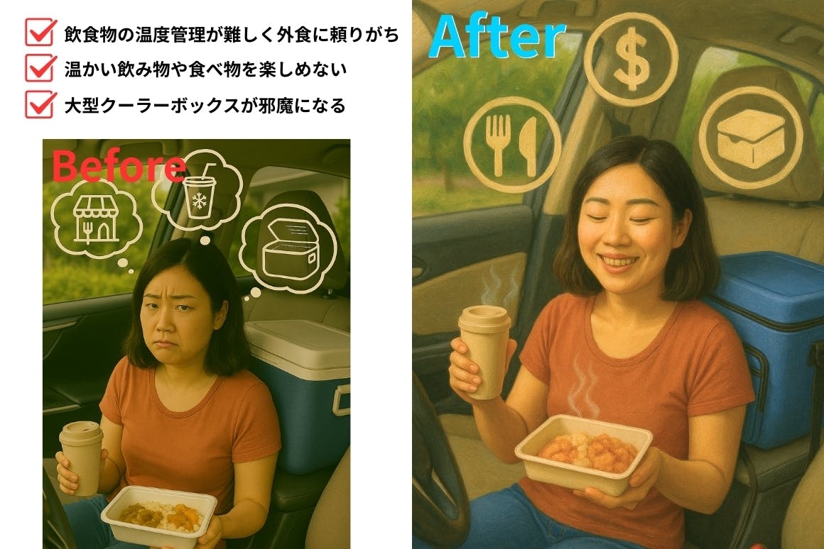 また電源が入っていない状態でも温度をキープ。キャンプやアウトドア、災害時にも安心して使える、スマートで実用的な保冷・保温機能を実現しました。