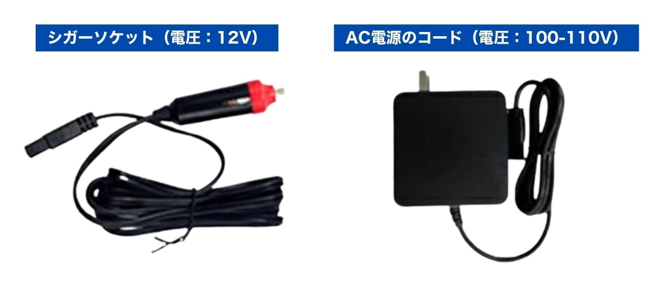 A3:DC12V電源及びAC100V電源に対応します。車のシガーソケットや自宅のコンセントが利用できます。