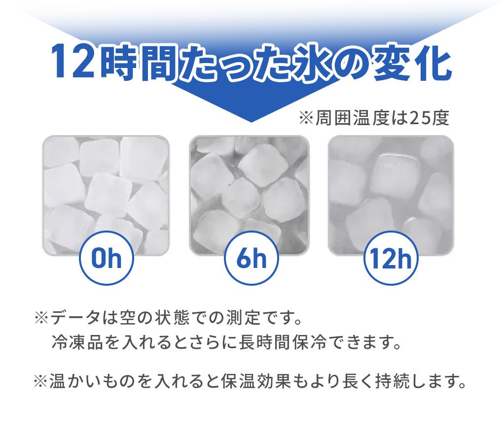 A:本製品は優れた断熱材を採用しているため、約6時間の保冷/保温が可能です。