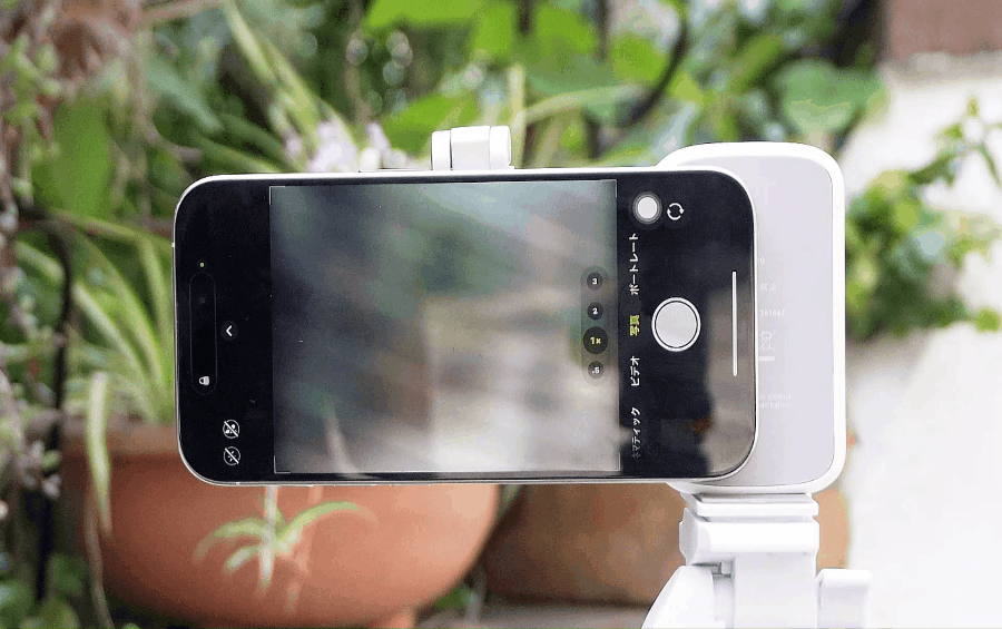 スマートホンのカメラ機能でビデオ、写真、シネマティックやポートレート、スロー撮影などのメニューも遠隔リモコンで選ぶことが出来、そのままシャッターボタンを押すと撮影まで行う事が出来ます。