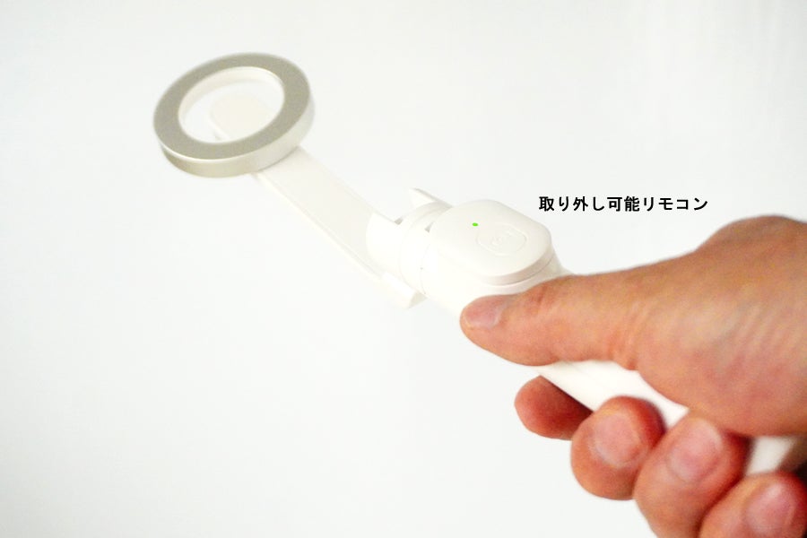 スマホクリップを装着していない場合でも三脚本体に取り外しリモコンがついておりますので、自撮り撮影をする事が出来ます。