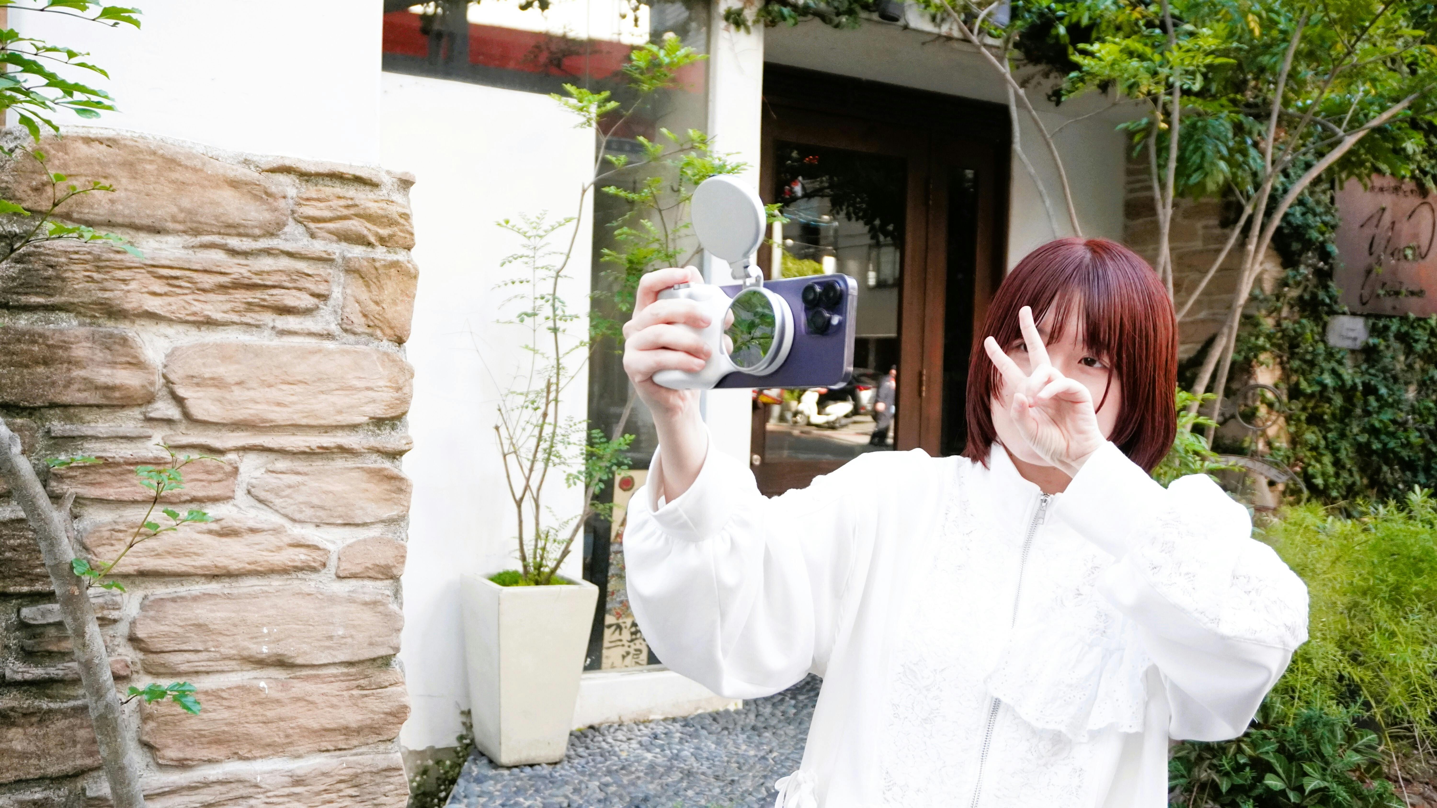 基本片手で撮影しても問題ありませんが、絶妙なアングルやカメラを固定したい場合などに関しては左手を添えるとより安定した撮影が可能になります。スマホ単体で体感できない安定感を感じていただく事になります。