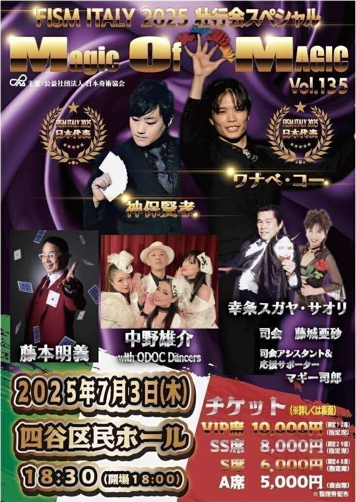 その想いを日本中に広げるための第一歩として、FISM代表マジシャンが出演する特別応援イベントのマジックショーを企画し、7/3(木)に東京新宿にある四谷区民ホールで開演します。