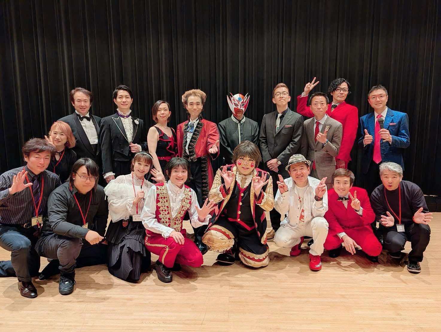 写真は、5月30日に開催された「ザ・マジック&ザ・漫才」の出演者とステージスタッフです。平日の昼間にも関わらず、130名近くのお客様にお越しいただきました。ありがとうございました。日本奇術協会の目的の一つとして、奇術「マジック」の普及振興があります。「普及」という意味では、まだまだ力足らずと感じています。一度、マジックに触れることができれば、その楽しさや不思議さに「又見たい!」「もっと見たい!」と思われるでしょう。でも、その「はじめの一歩」の機会がなかなか分かりづらいのが現状です。マジックショーやイベント、マジックバー、マジックレストラン・・・など、見る機会はあるのですが、気軽に行くには「はじめの一歩」のハードルが高いようです。7月3日は、気軽に見ていただけるマジックショーです。それも世界レベルのマジシャン達の技をご覧いただけます。テレビ見たり、パーティーの余興、レストランや居酒屋さんでテーブルを回ってくるマジシャン達の演技もとても楽しいです。ただ、今回は、そういう場所では、会場の環境や準備時間などの関係で、なかなか見る機会がない演技をご披露します。そういうショーを気軽に見られる環境を増やしていくのも奇術協会の役目だとも理事の一人として思っています。クラウドファンディングも私どもにとっては「はじめの一歩」です。ここから、一歩ずつでも、マジック業界の未来が更に素晴らしく変わることを願っています。まだ始まったばかり。引き続きご支援、応援していたけたら嬉しいです。よろしくお願いいたします。公益社団法人日本奇術協会 理事 わか葉