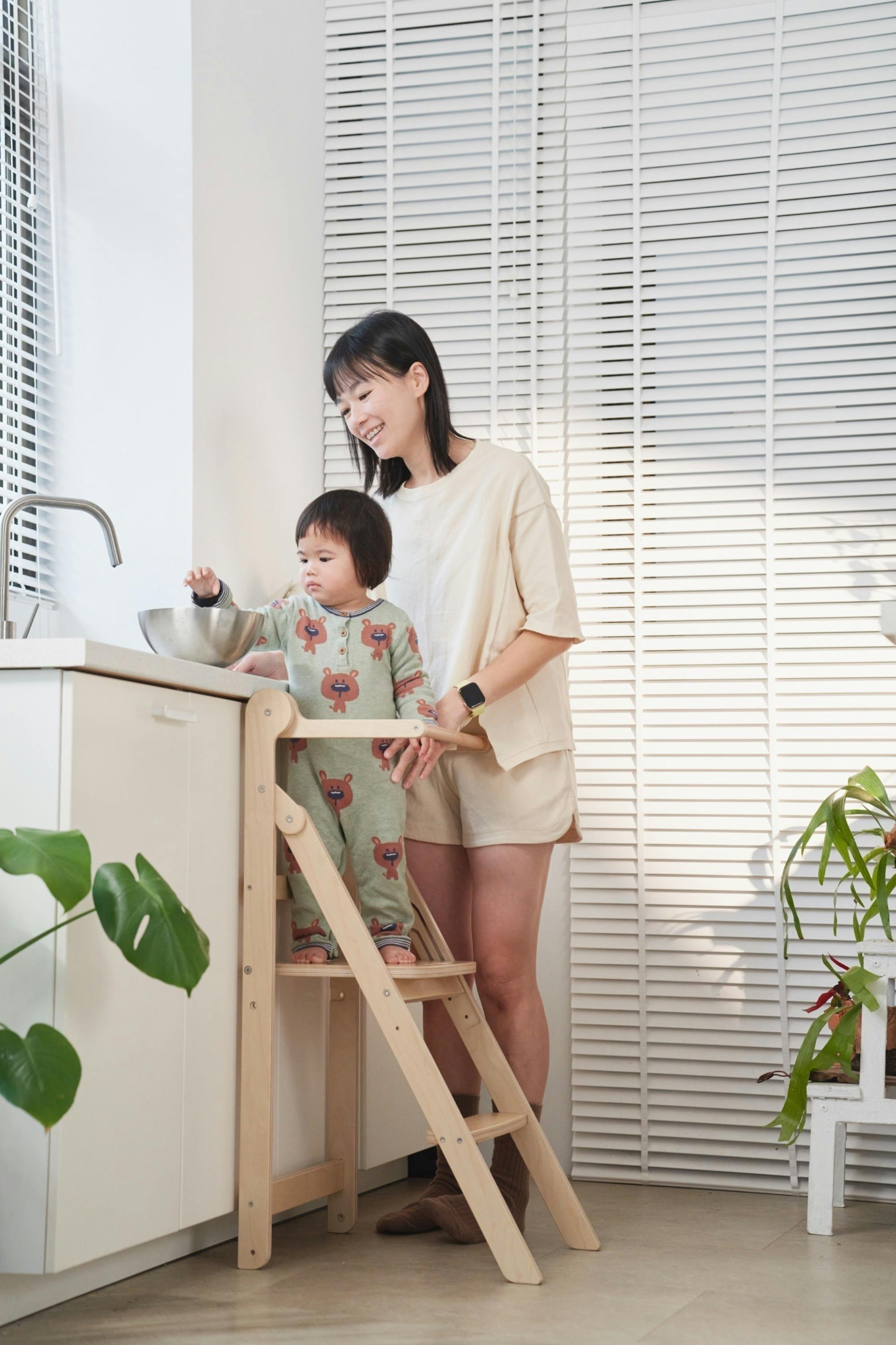 また、現代の忙しい生活の中で、親子が一緒に過ごす時間は限られています。特にキッチンでの時間は、親子の絆を育む大切な場面です。しかし、子どもがキッチンで安全に過ごすための環境作りは簡単ではありません。私たちはこの課題を解決するために、親子で安心して使えるラーニングタワーを開発しました。この製品を通じて、親子での「おしごと」がより楽しく、安全なものになることを願っています。