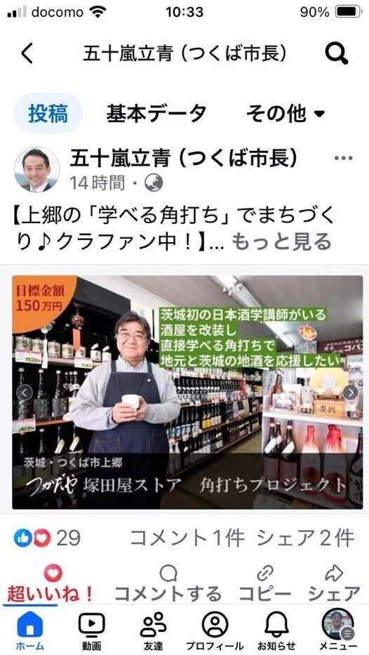 クラウドファンディングに挑戦してもうすぐ2週間。なんと、五十嵐立青・つくば市長がSNSで紹介してくださいました。