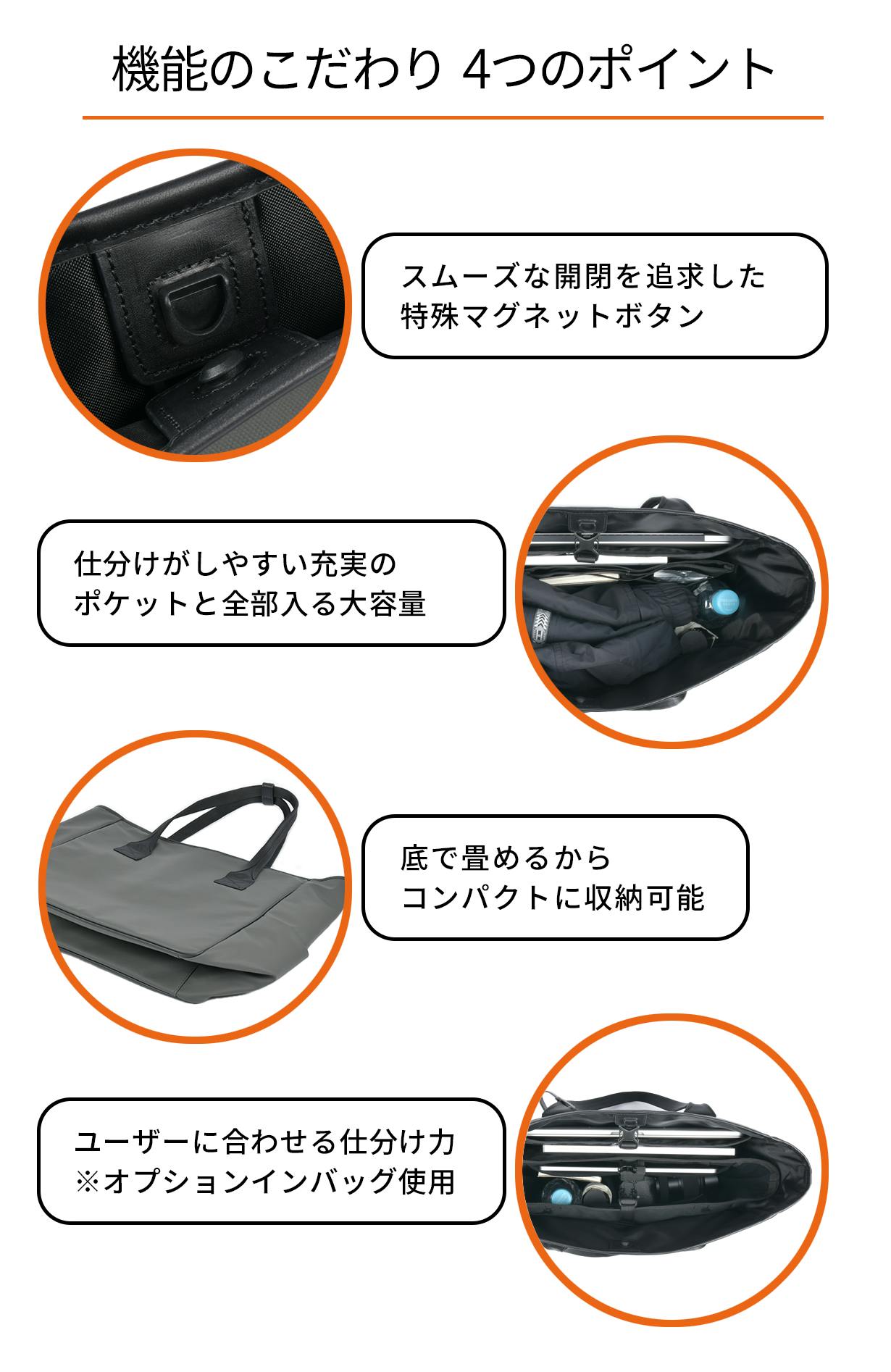 これ以外にも老舗バッグメーカーが運営するTRIDEALらしく、付属素材や小さな機能性まで追求して開発したタフビッグトートの特長を項目ごとに詳しくご紹介します。