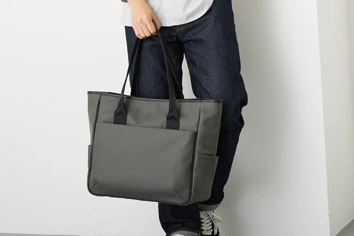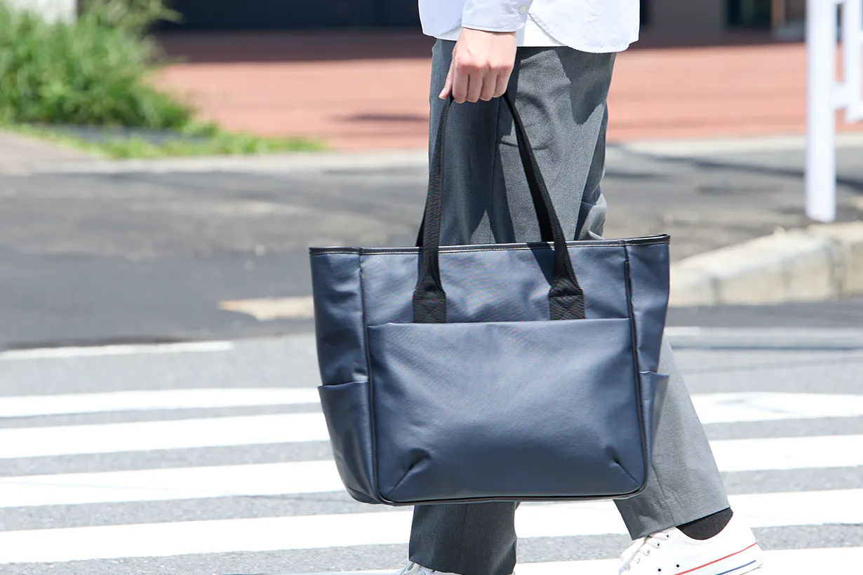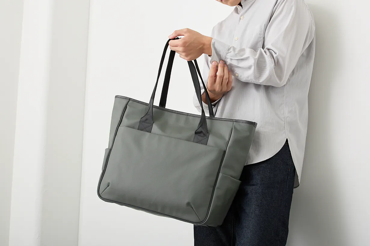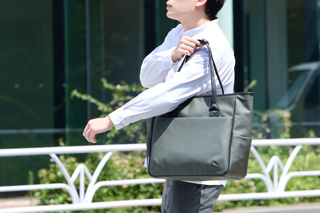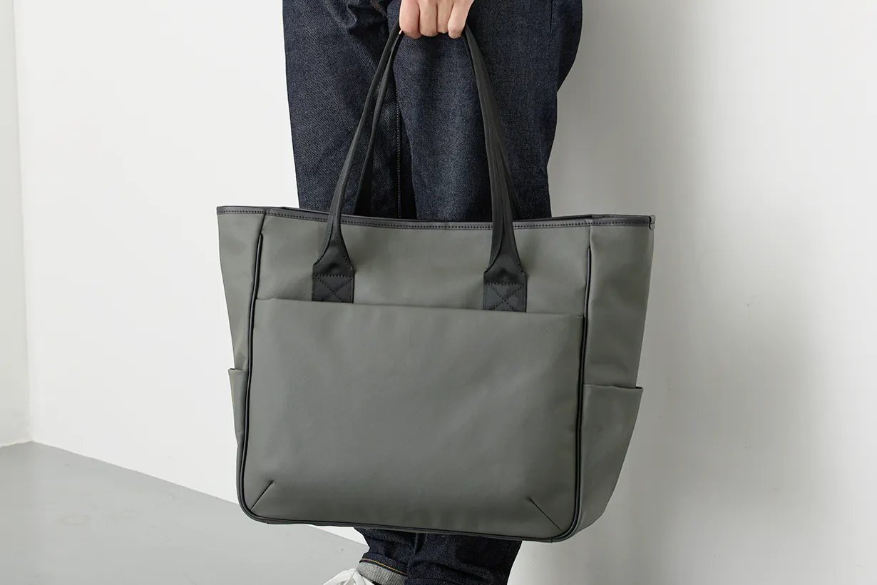 キャンバストートならではのざっくりと使えるメイン収納の大容量はもちろん、充実の小分けポケットでビジネスシーンにもしっかり対応します。