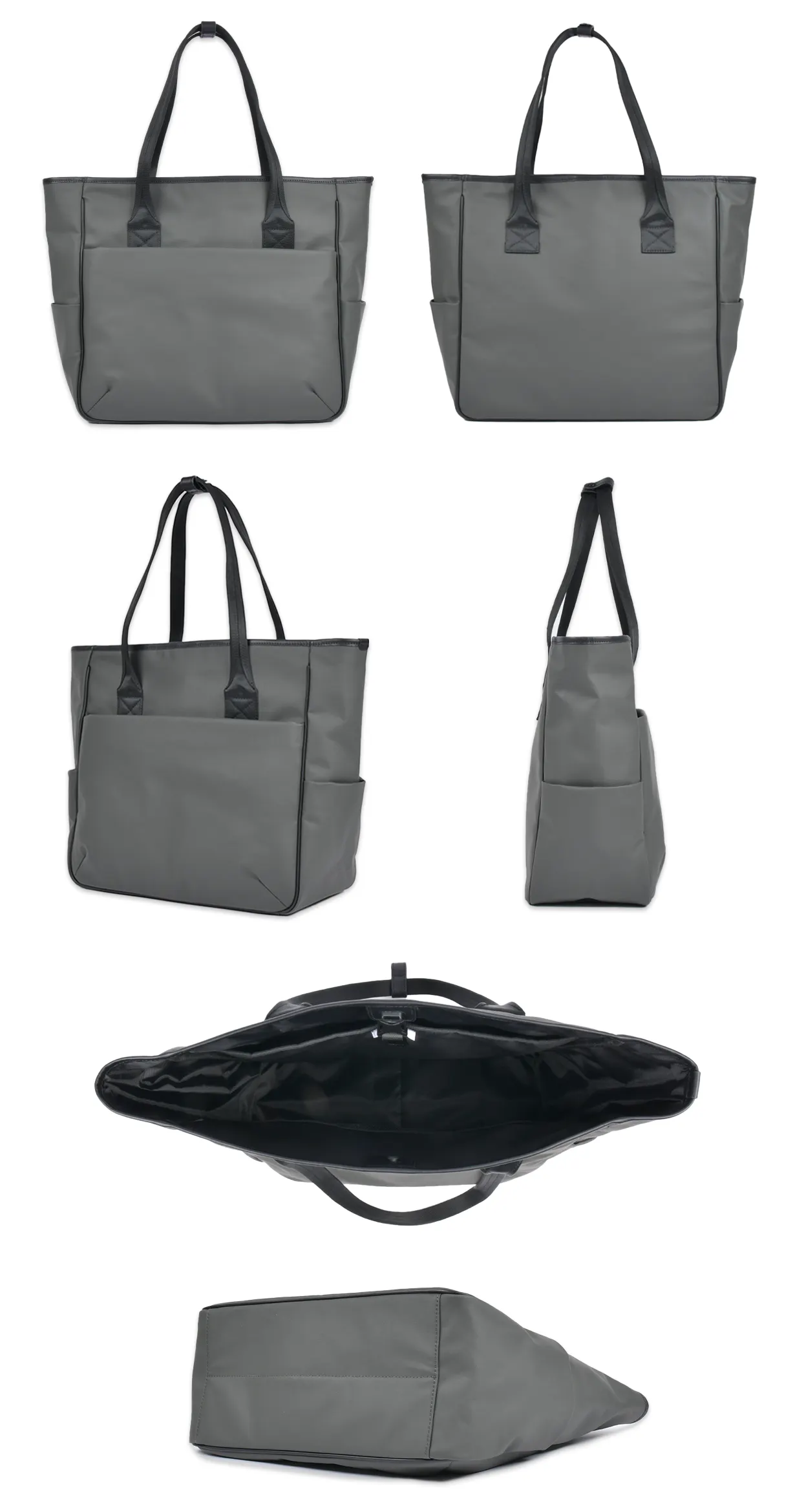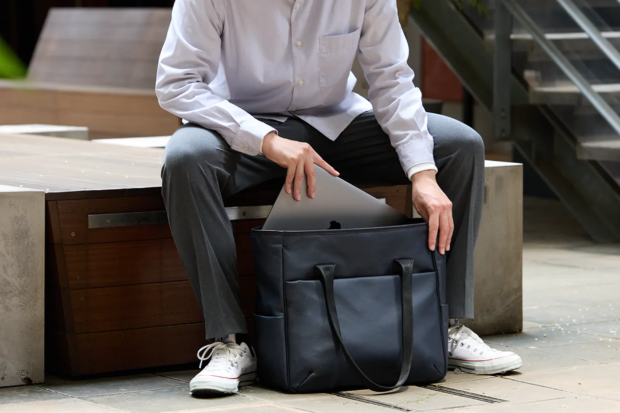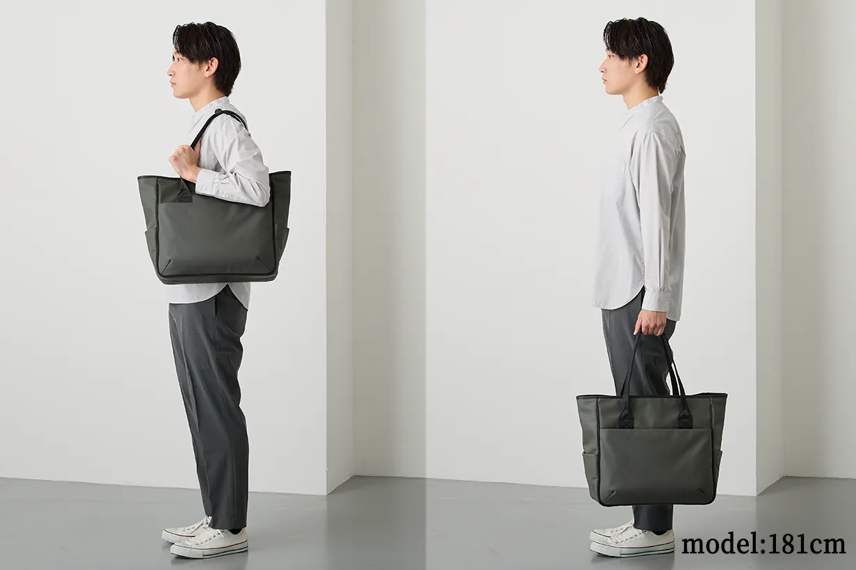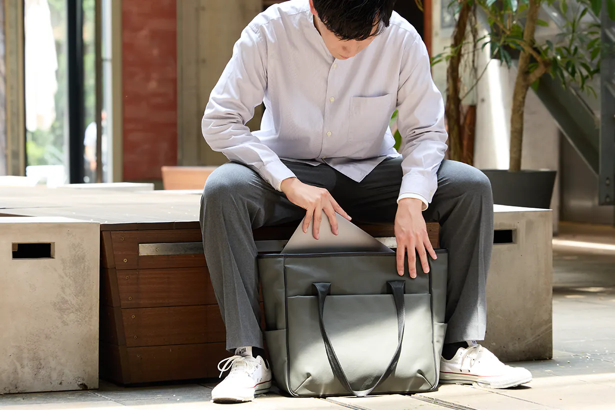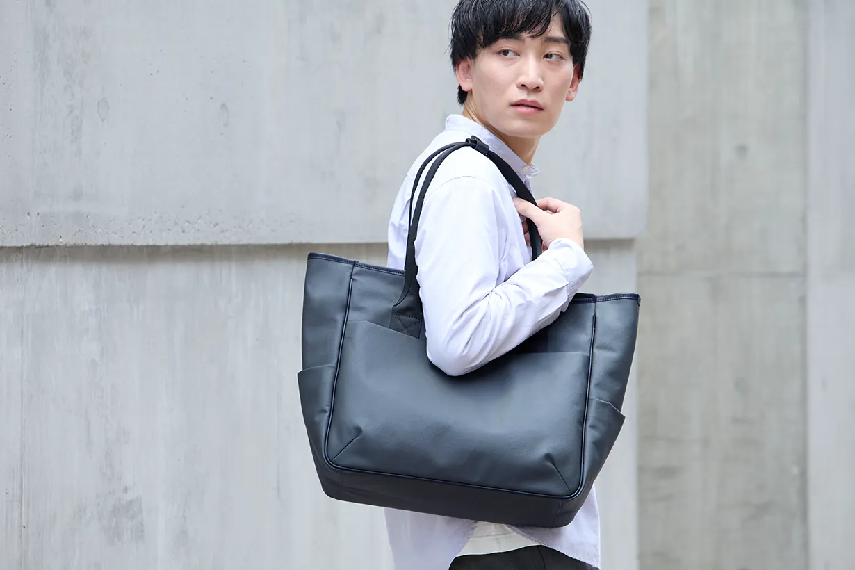 キャンバストートならではのざっくりと使えるメイン収納の大容量はもちろん、充実の小分けポケットでビジネスシーンにもしっかり対応します。