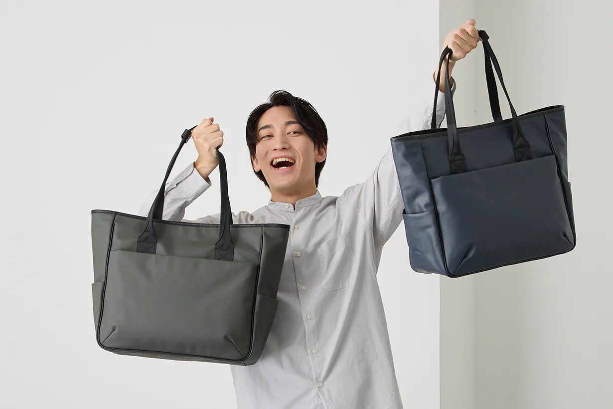 今回のタフビッグトートを作ろうと思ったキッカケは、普段からトートバッグで通勤をする私自身が、キャンバス製のトートに抱いていた不満を解消したいという想いから開発をしました。