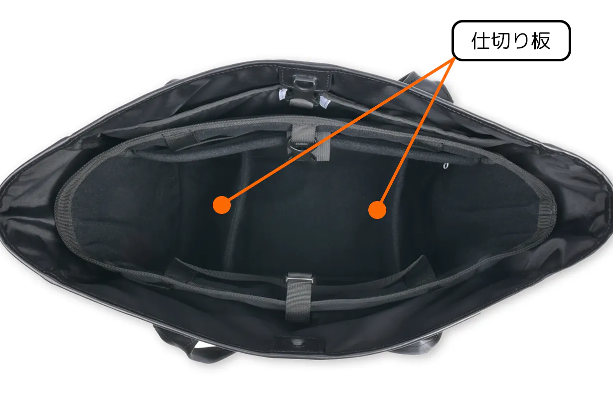 ページ上部でご紹介した通りタフビッグトート専用の機能的なバッグインバッグをオプションとして用意しております。