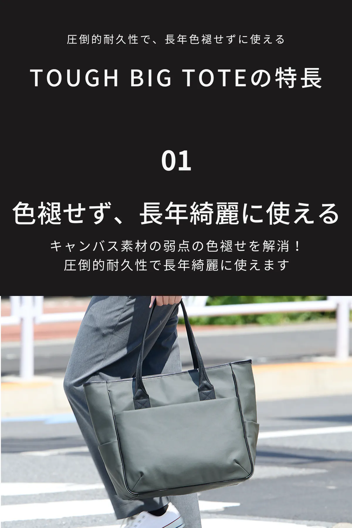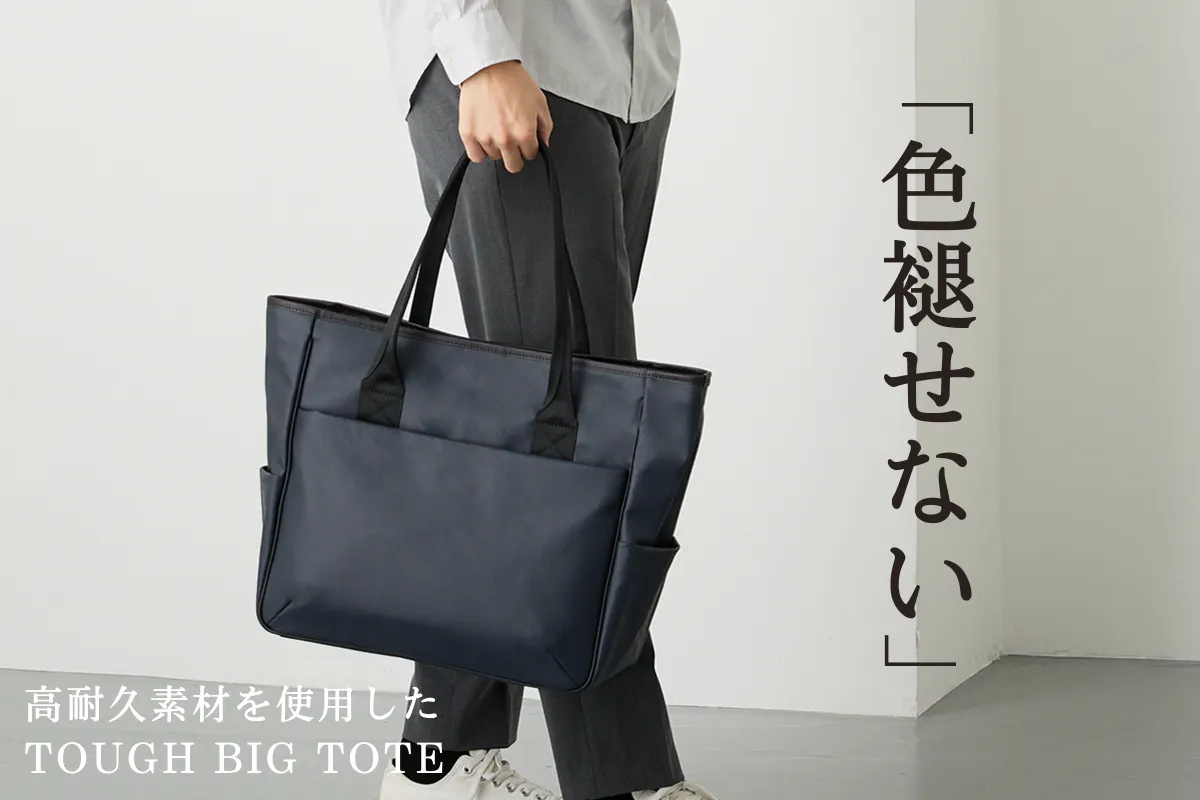 トートバッグ愛好家の私が、耐久性が高く毎日タフに使え、さらに長年色褪せず綺麗なまま使える、理想のトートバッグを作りたいと思い「TOUGH BIG TOTE」を開発しました。