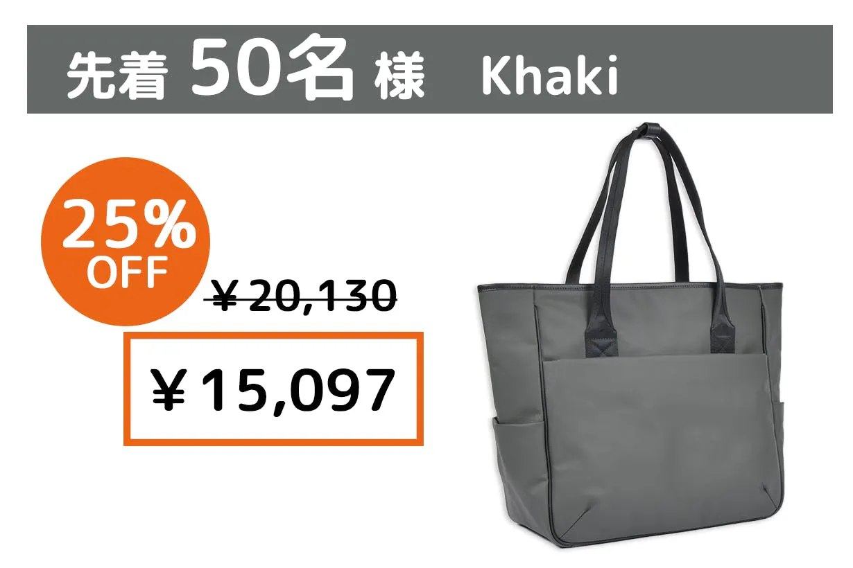 今回のプロジェクトでは、新色のカーキとネイビー、さらに既に一般販売中のブラックも特別価格でご用意しました。