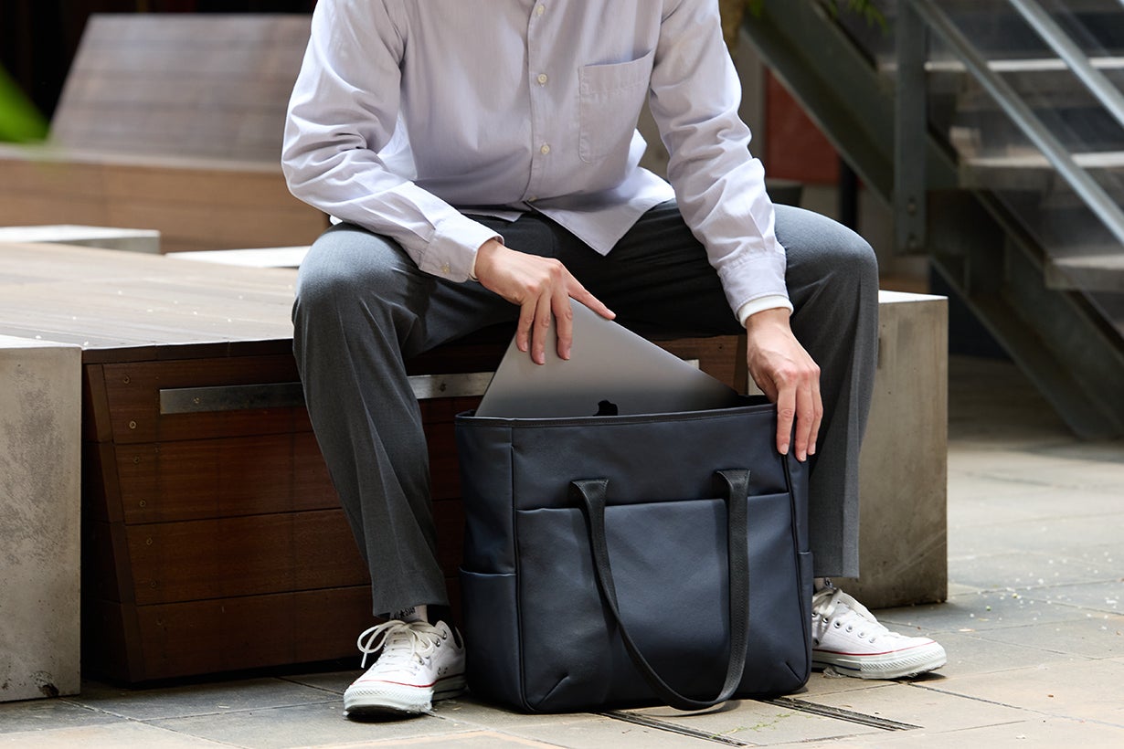 今回のタフビッグトートを作ろうと思ったキッカケは、普段からトートバッグで通勤をする私自身が、キャンバス製のトートに抱いていた不満を解消したいという想いから開発をしました。