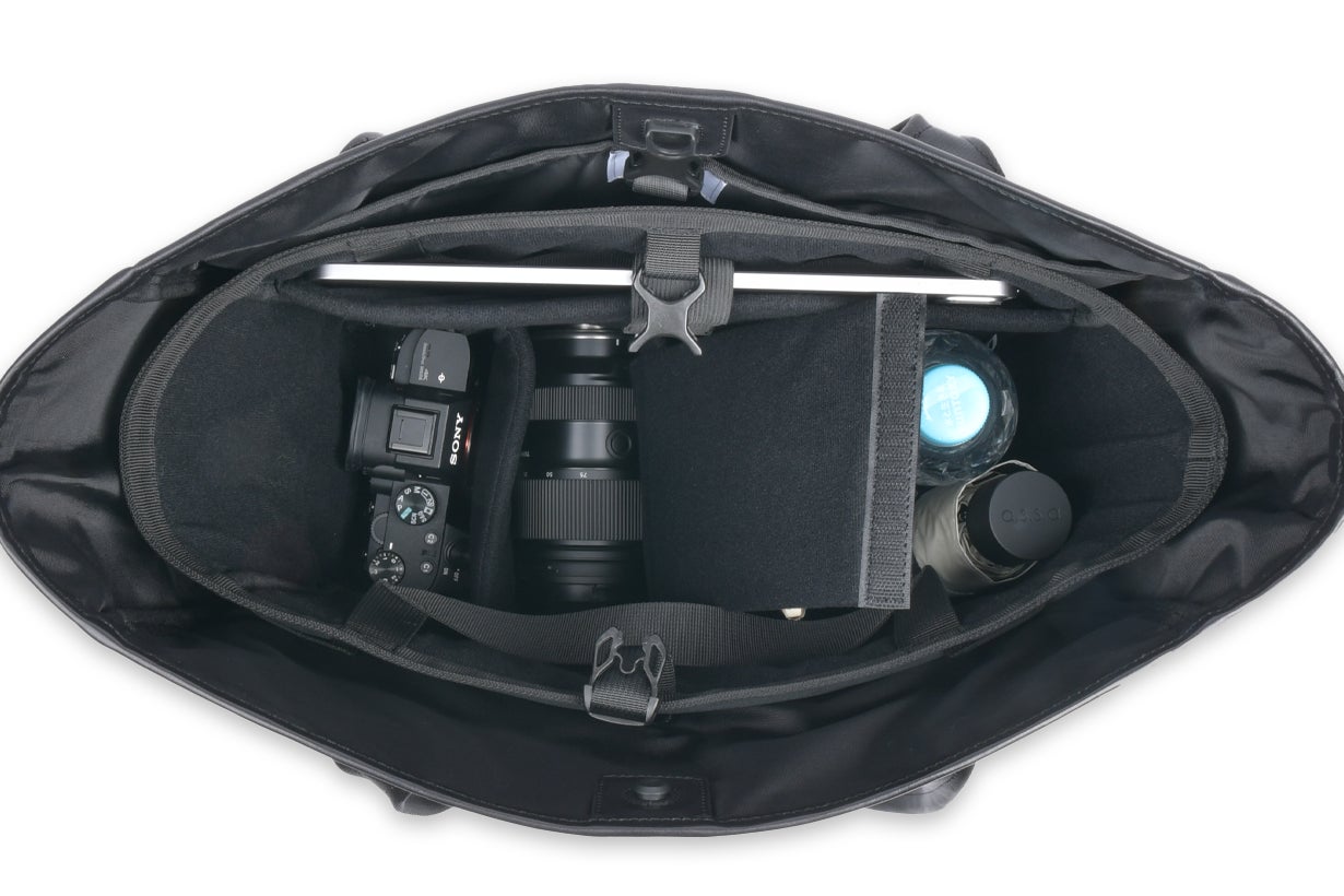 バッグインバッグ全体にクッション芯が入っているので、カメラなどのデバイスも心配なく持ち運べます。