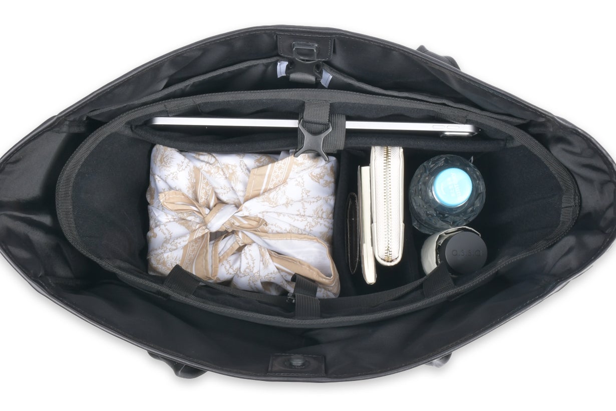 タフビッグトート専用ジャストサイズのバッグインバッグを使えば、あなたに合わせた仕分けが可能。