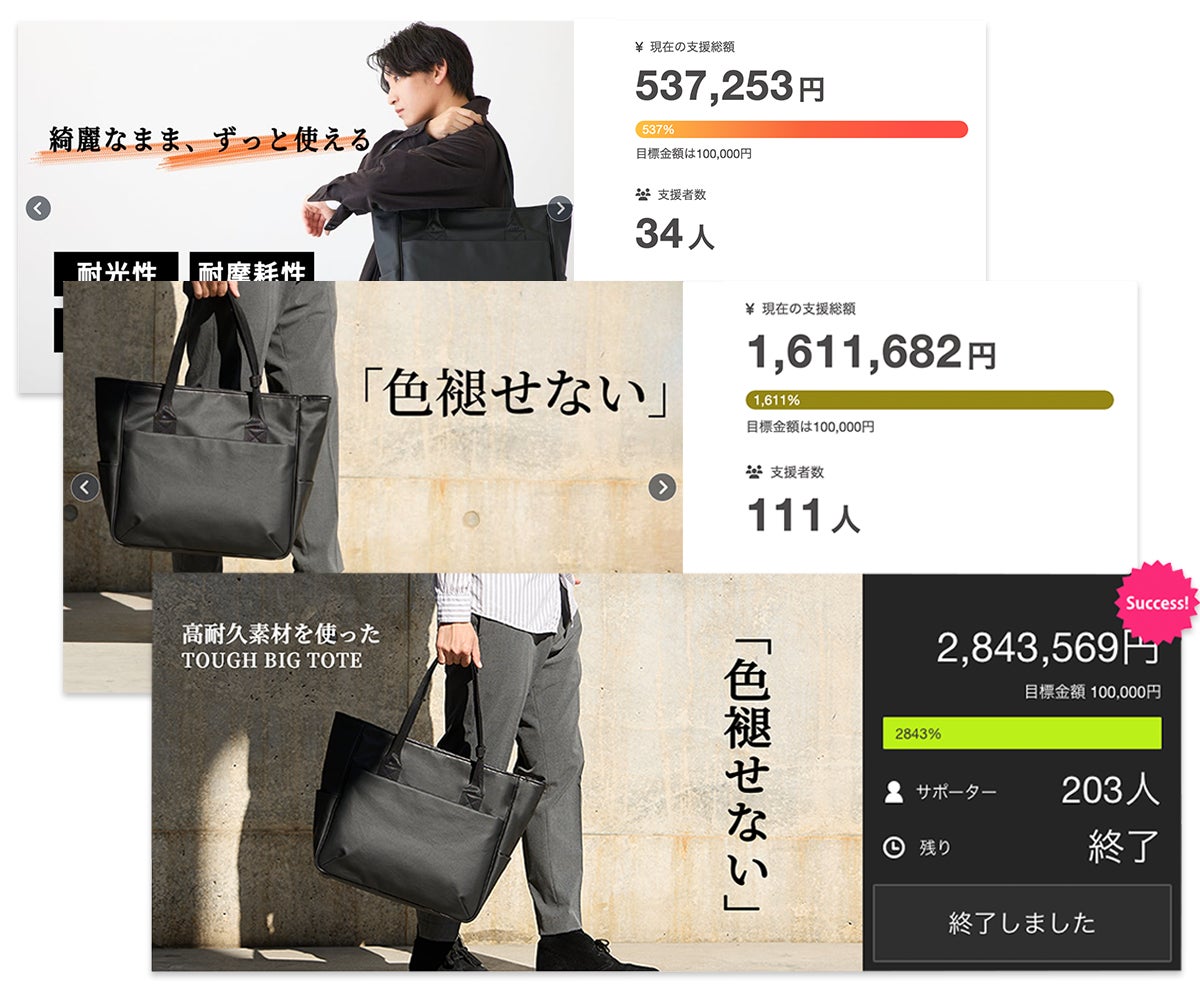 先行して実施したブラックのクラウドファンディングでは、合計340名を超える方から約500万円を購入して頂きました。