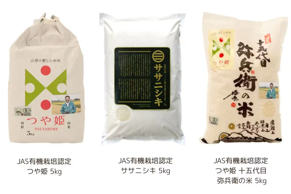 JAS有機栽培認定、つや姫、ササニシキは、化学肥料を一切使わず、米ぬかを軸とした手作り有機肥料だけで育てたお米です。