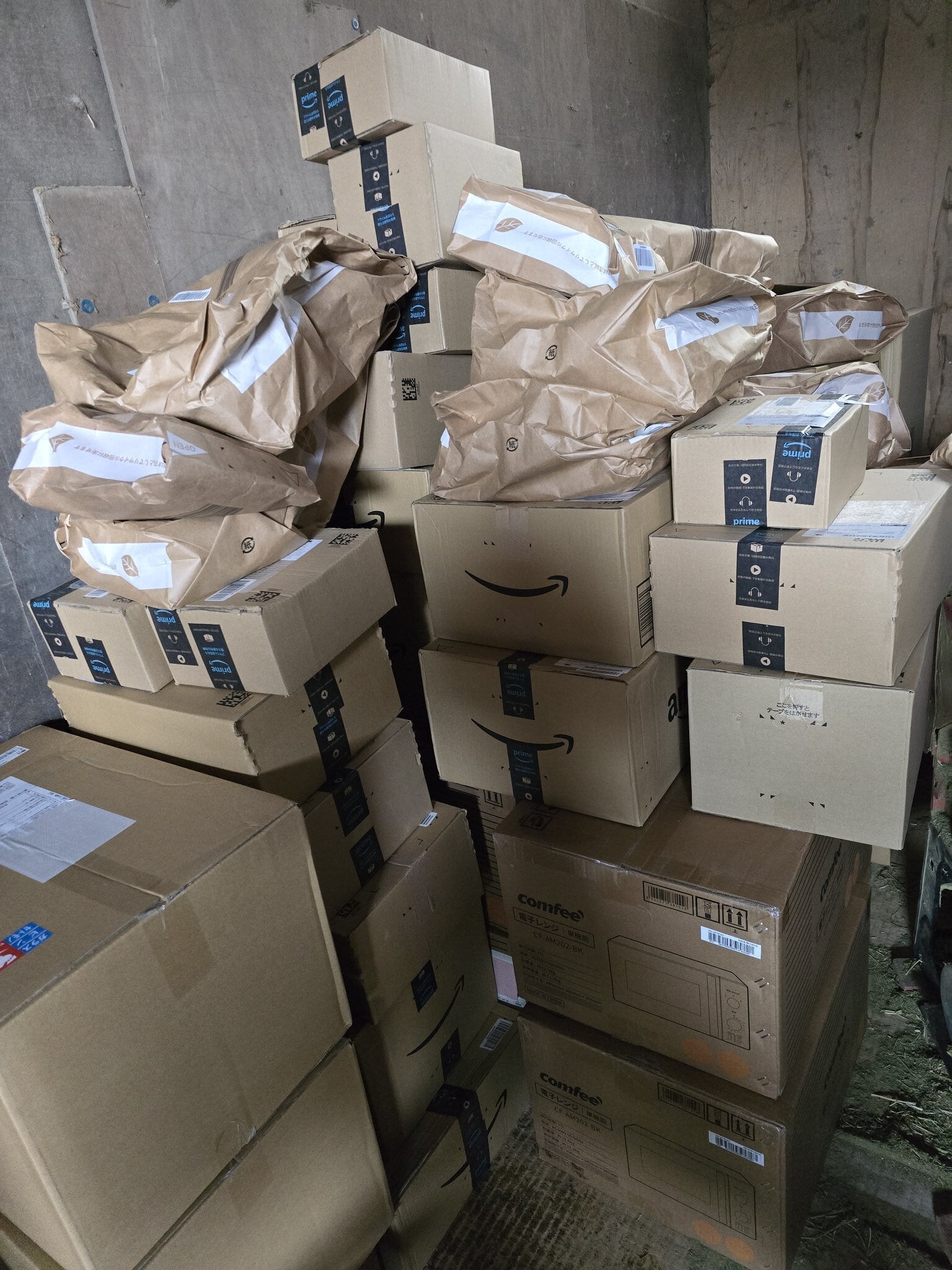 Amazonからたくさんの物資も送っていただき、ありがとうございます。5月8日迄に180名の方からたくさんの物資も送っていただきました。