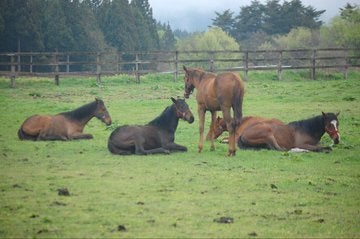 厩舎が全焼したため、牧場でいま飼育している1歳馬10頭は休める場所がなく、放し飼いの状態が続いています。