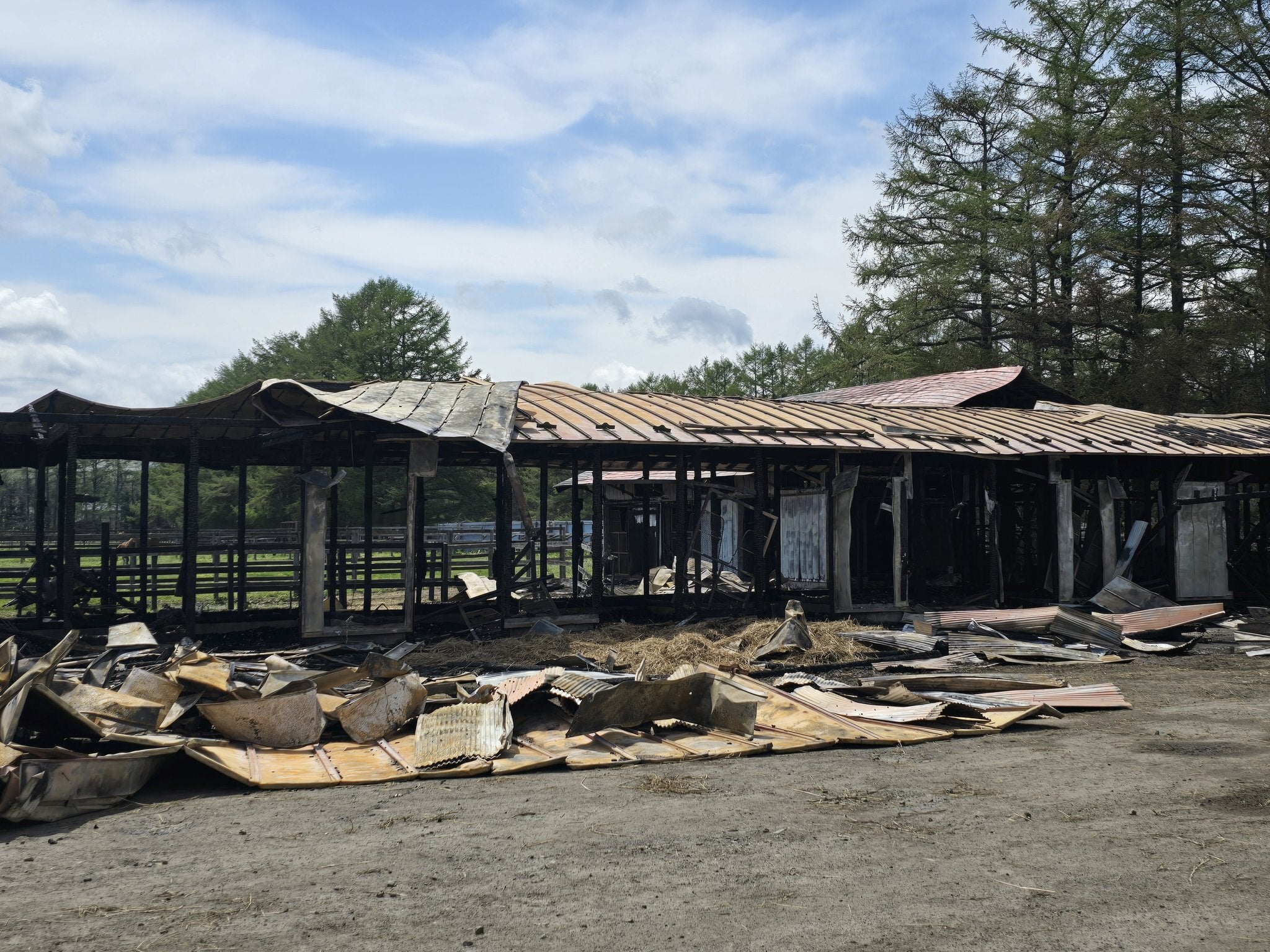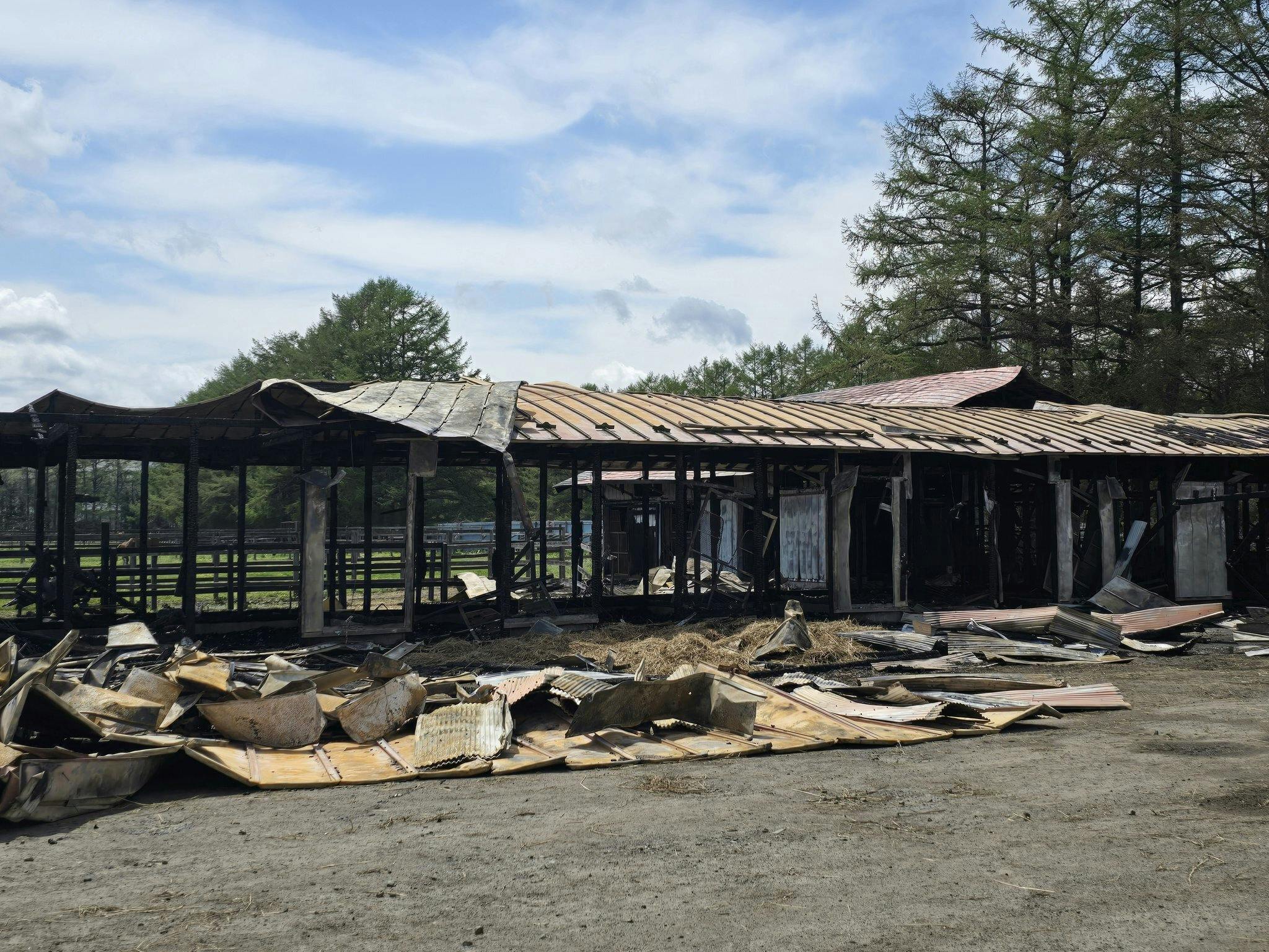 しかし、2025年5月4日に発生した火災で、事務所と厩舎2棟がほぼ全焼しました。