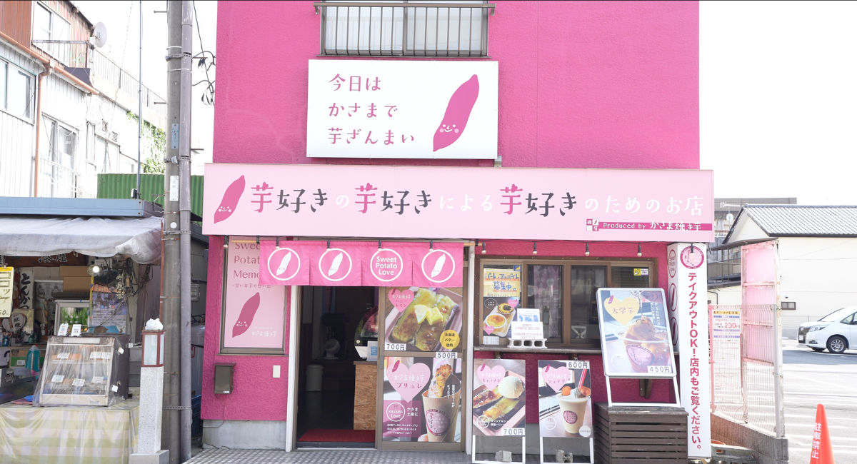 「おイモ若イモ、男子も女子も、みんな大好き、かさま焼き芋」というコンセプト商品の数々