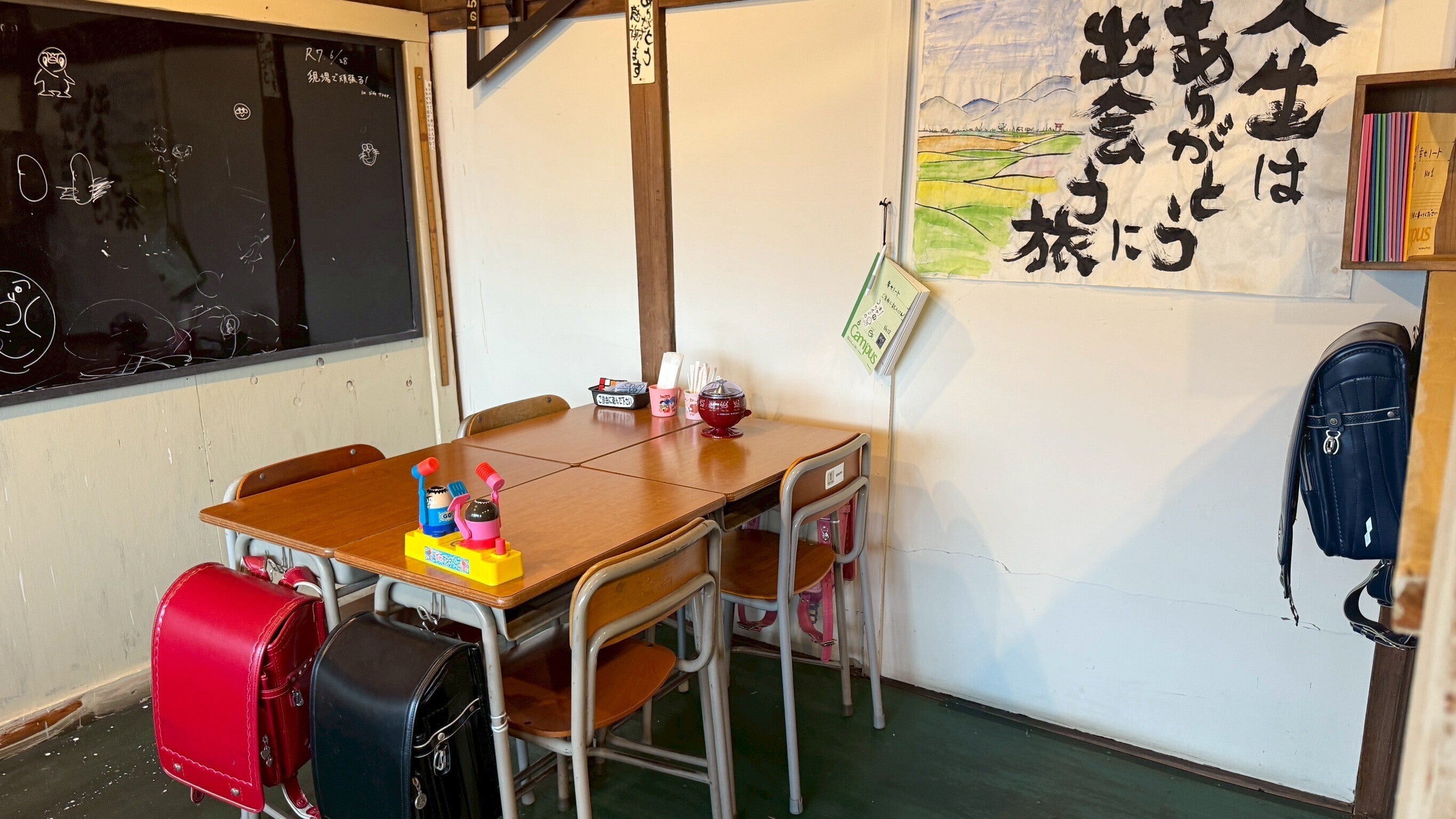笠間稲荷神社の鳥居前に佇むレトロなカフェ。1階は懐かしい昭和の喫茶空間、2階には小学校の教室を再現したスペースがあり、まるでタイムスリップしたような雰囲気を味わえます。