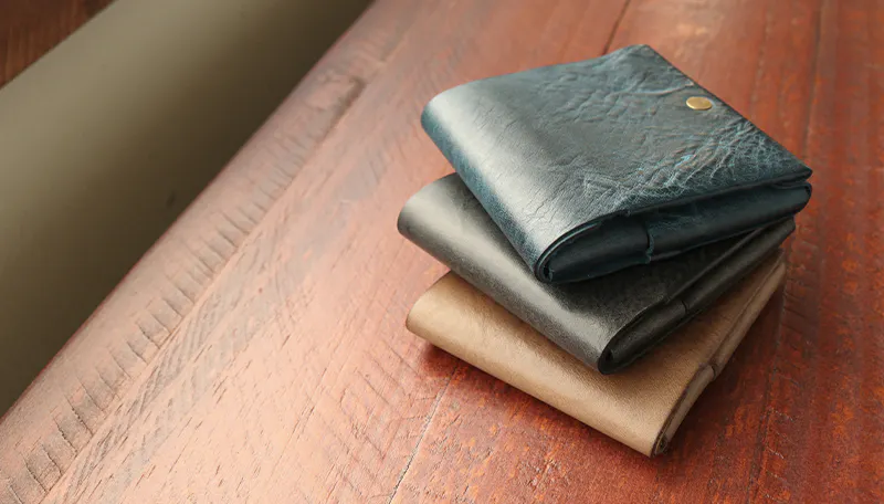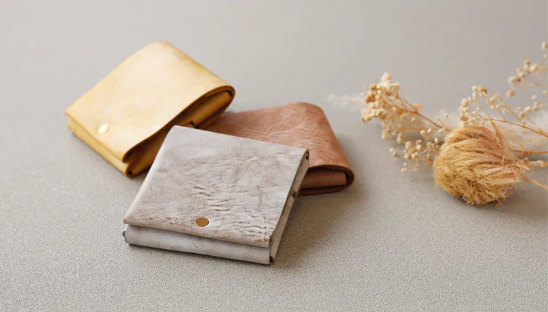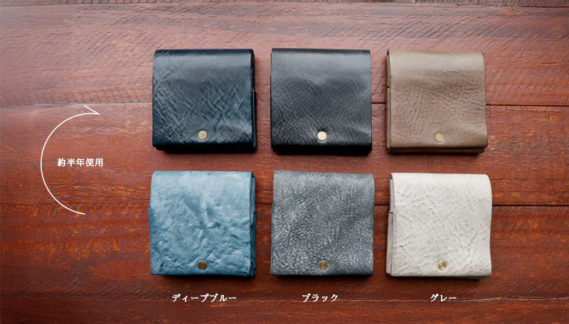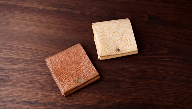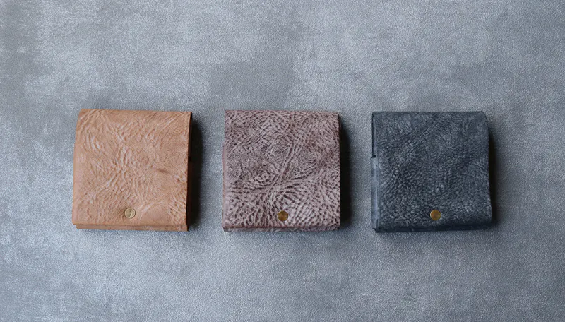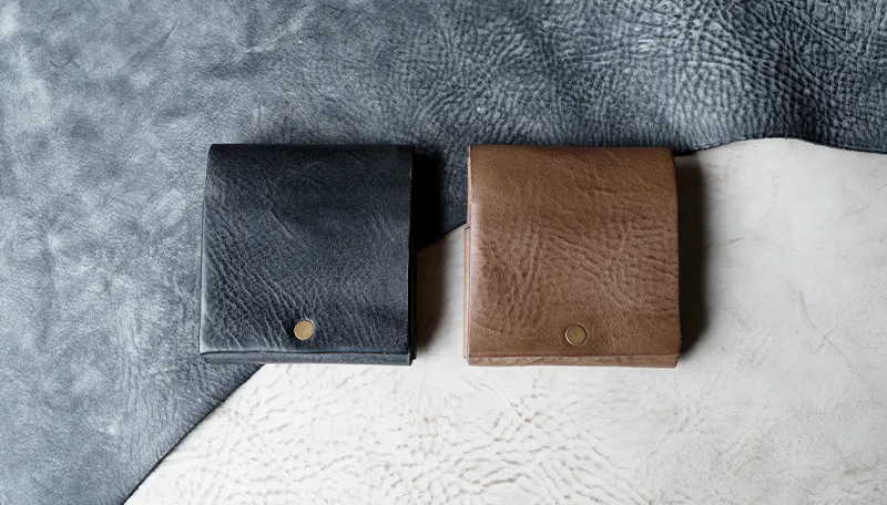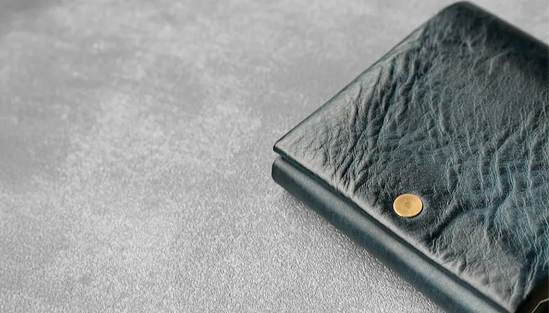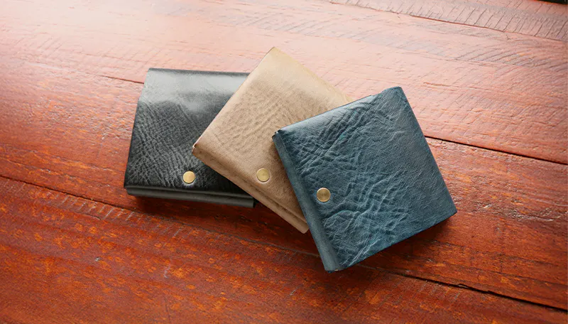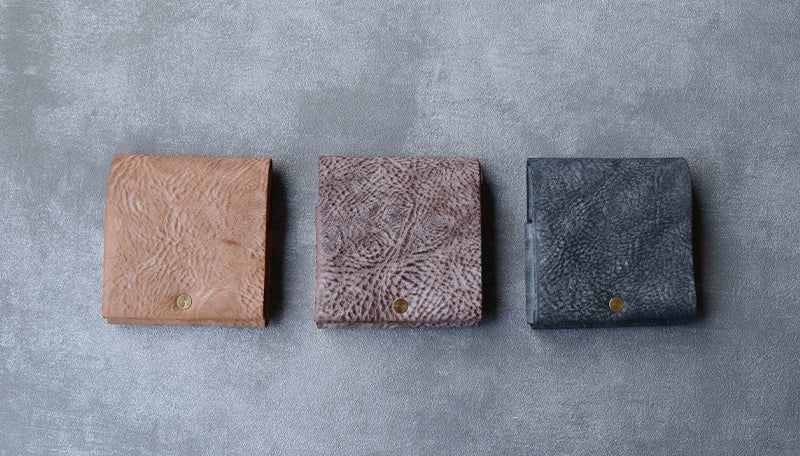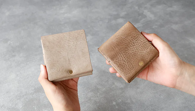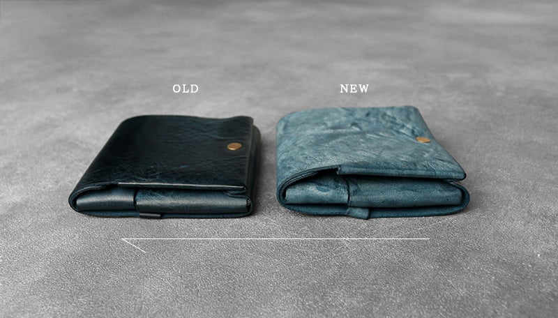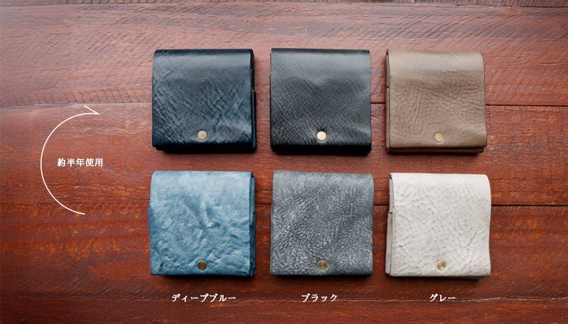時間と共に表情を変える”育てる革財布”。