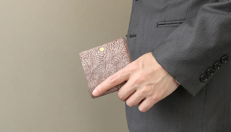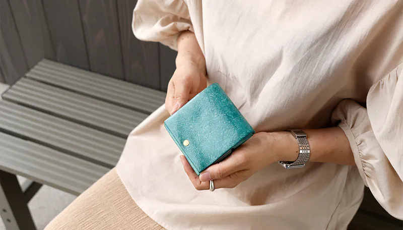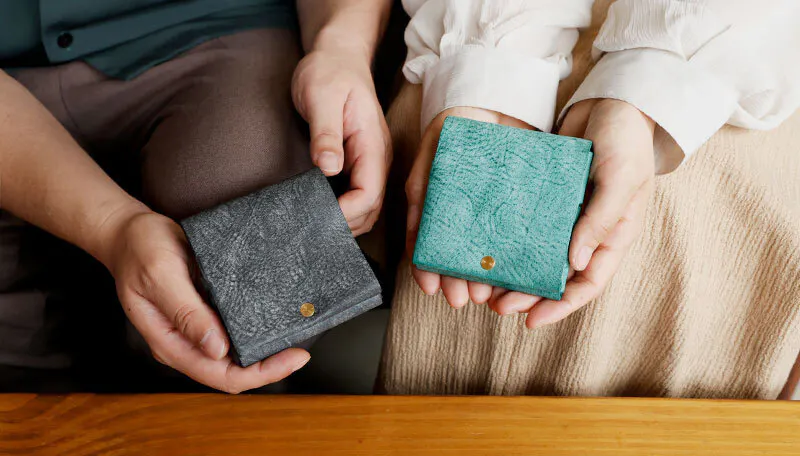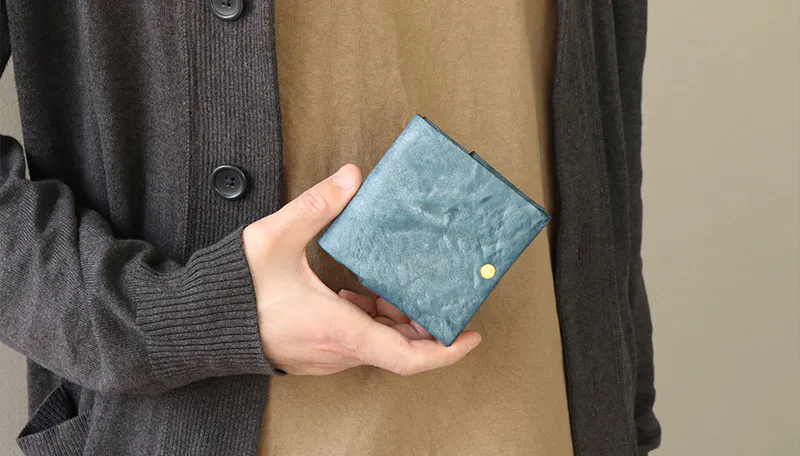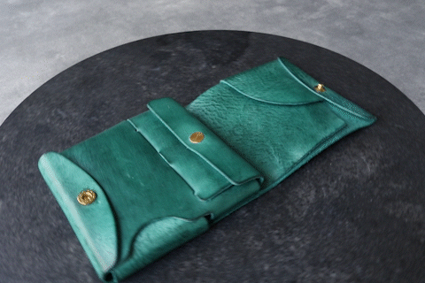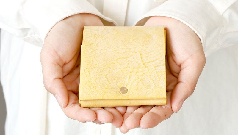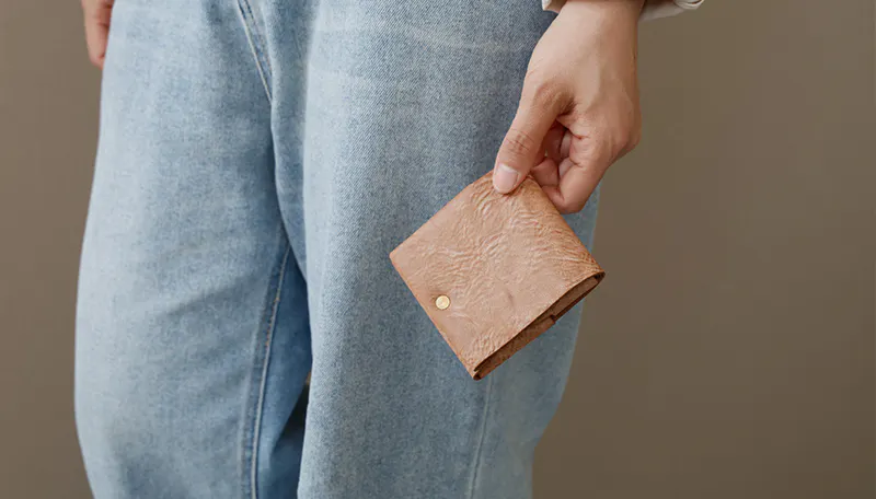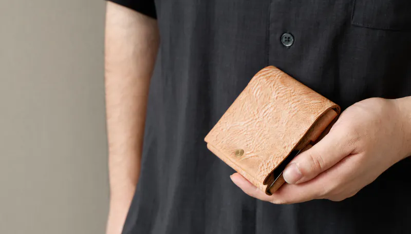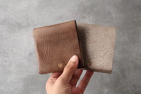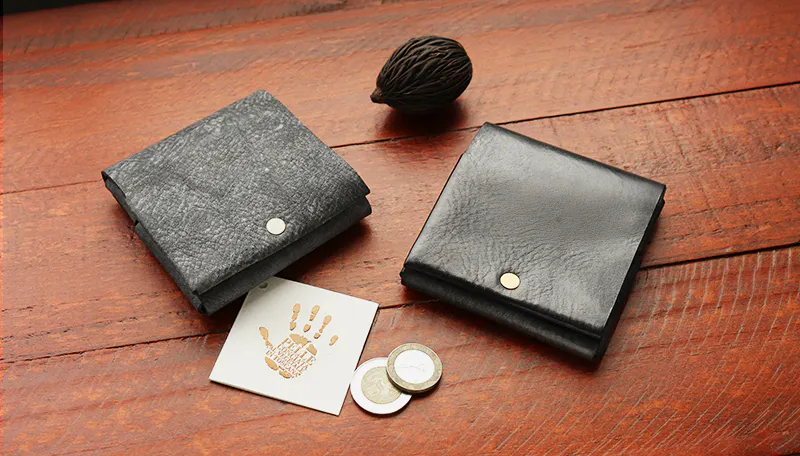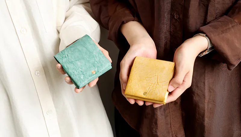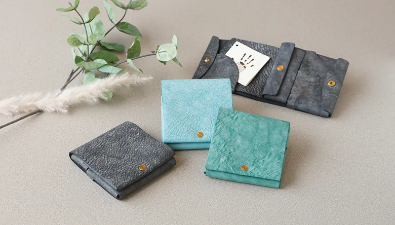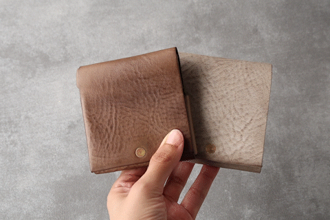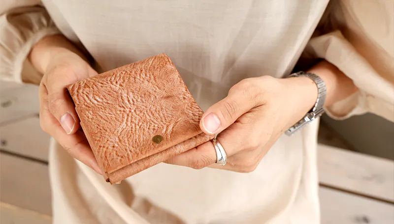 時間と共に表情を変える”育てる革財布”。