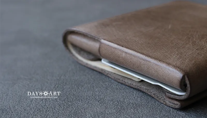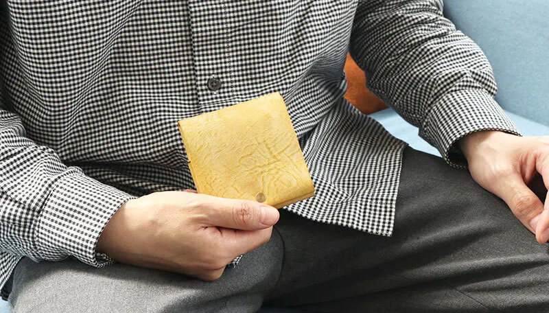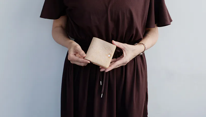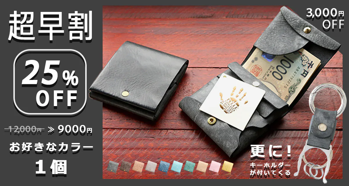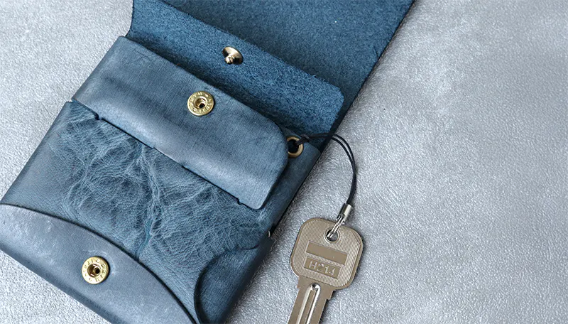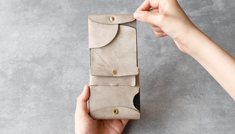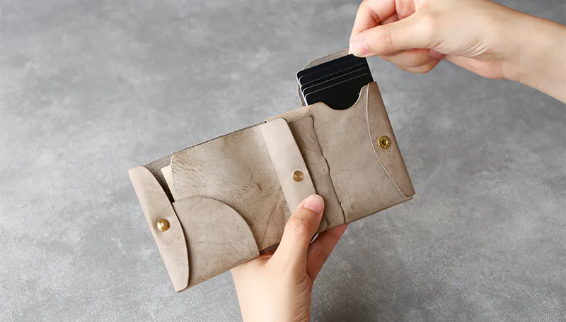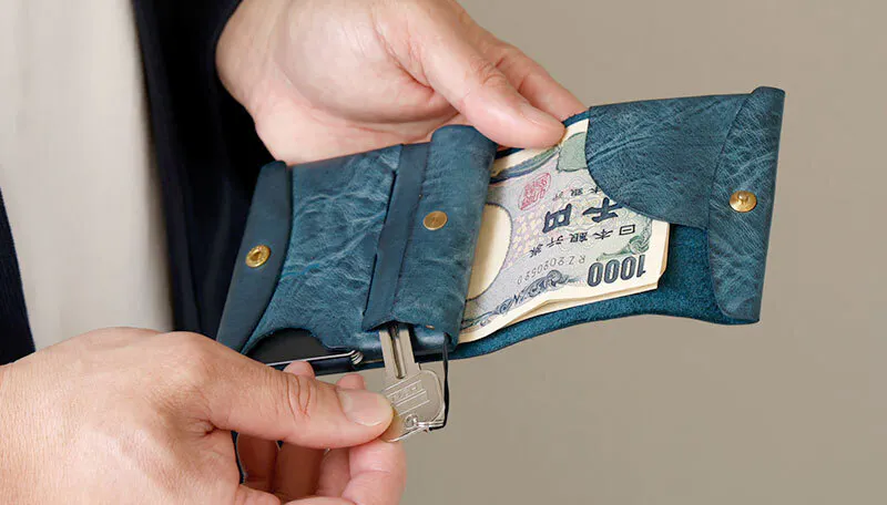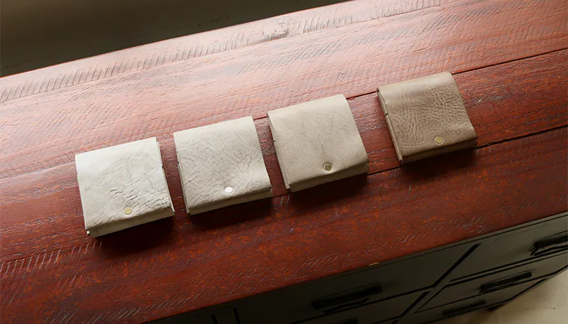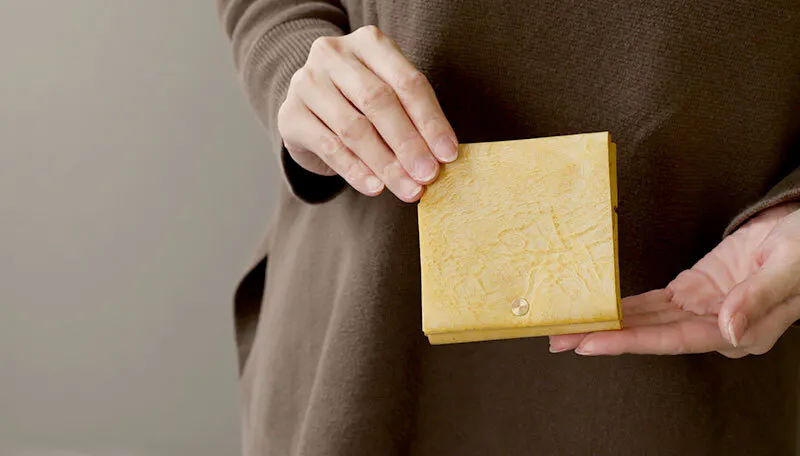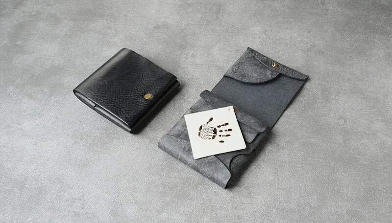 時間と共に表情を変える”育てる革財布”。