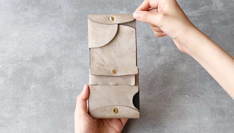 継ぎ目の無い二つ折り財布です。