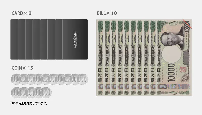 お札収納:10枚 - 小銭収納:15枚