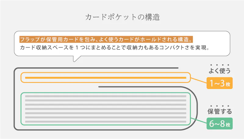 最大8枚のカードが入るカードポケットと