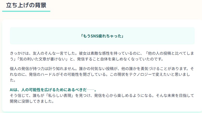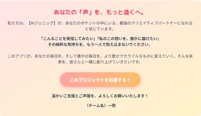 もう、発信に悩まない。AIがあなたの「伝えたい」をカタチにする、新感覚アプリ【AIジェニック】を届けたい!