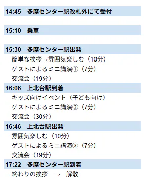 集合時間・場所: 14:45 多摩センター駅(改札外特設受付)