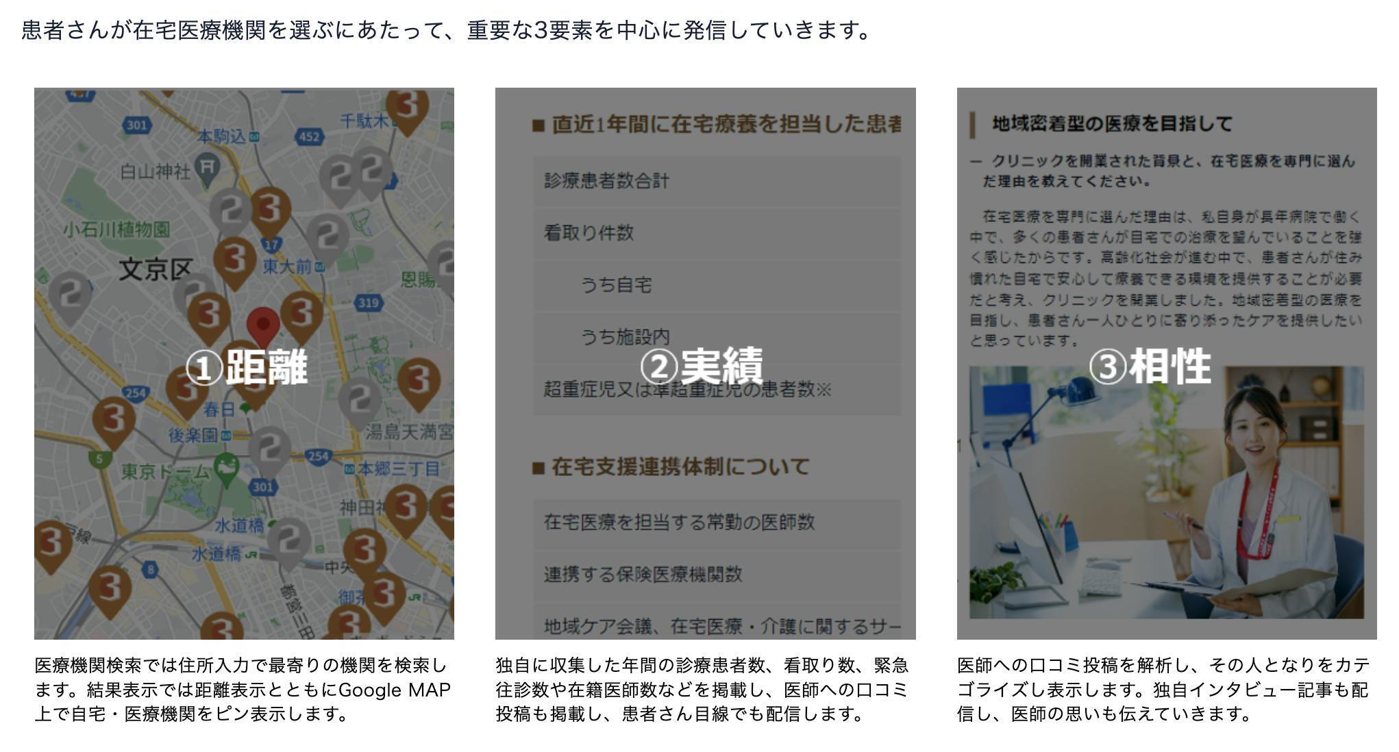 いざ在宅医療が必要になったとき、自分や家族にとって最適なサービスを、自ら選べる社会を実現したいと思っています。そして、サービスを受けたあとの「評価」もまた大切です。その声が蓄積され、次の誰かの選択の助けとなり、質の高い在宅医療が自然と広がっていく―そんな循環を作っていきたいと願っています。