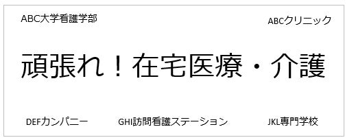 共通の応援メッセージの「頑張れ!在宅医療・介護」を中心として、取り囲むかたちで支援いただいた企業様名を協賛社一覧として掲載します。