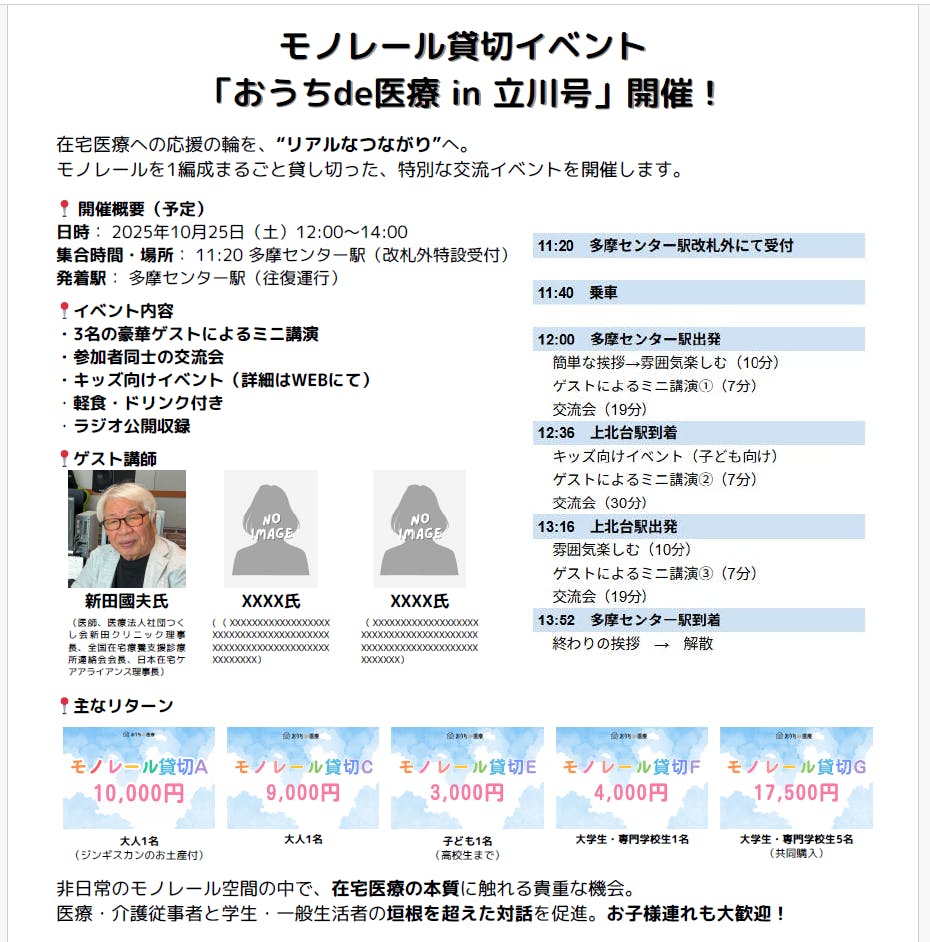 1.モノレール内でのイベント(ミニ講演を予定しておりゲスト調整中)